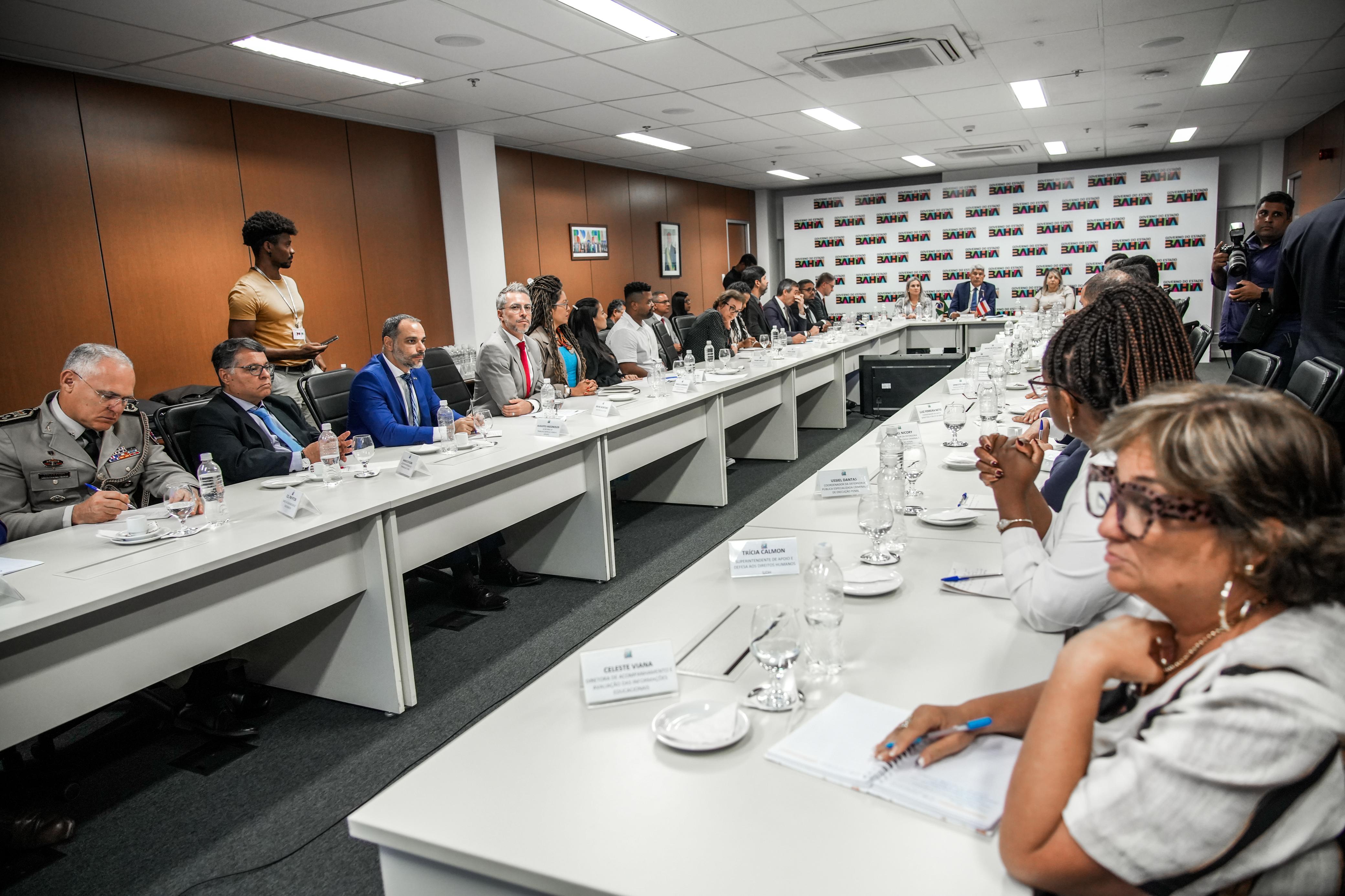 A reunião foi conduzida pelo governador Jerônimo Rodrigues e pelo secretário de Justiça e Direitos Humanos, Felipe Freitas. Durante o evento, Rodrigues destacou a importância do diálogo e da cooperação entre os diferentes setores da sociedade para fortalecer as iniciativas de segurança pública no estado. "Nosso compromisso é construir um ambiente de paz, onde o trabalho integrado entre governo, comunidade e instituições possa resultar em mudanças concretas na prevenção da violência e na promoção dos direitos de todos os baianos", afirmou o governador.