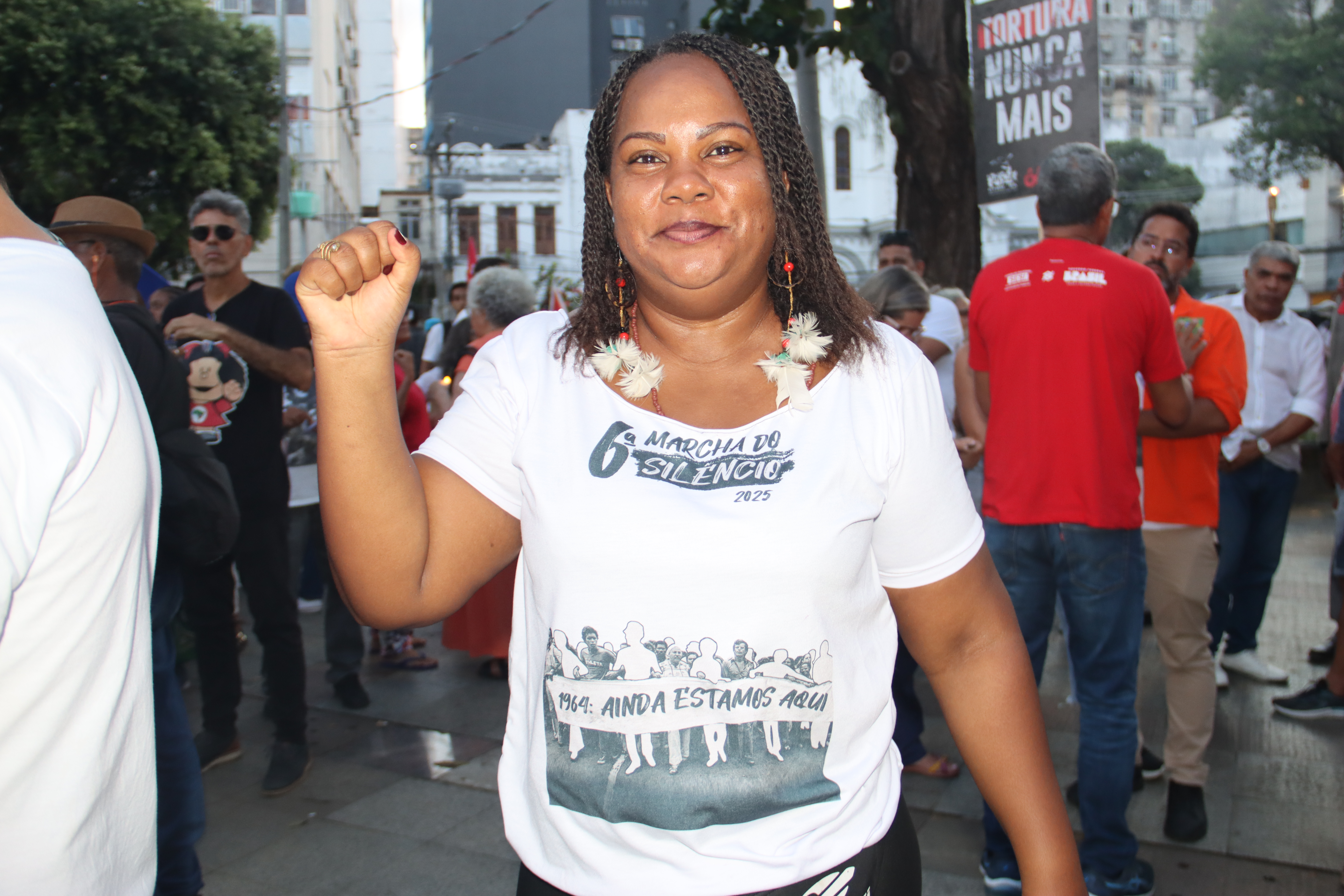 “A ditadura viola os direitos humanos. Com a ditadura militar, não há como garantir direitos e dignidade humana para a população. E nós queremos dignidade, liberdade e acesso aos nossos direitos. Isso aqui é uma luta, é de dizer ‘prisão para os golpistas’, é um dia para dizer ‘sem anistia para os golpistas’, para que eles sejam punidos e para que movimentos como esses não existam mais”, afirmou a presidente do ‘Tortura Nunca Mais’, Sirlene Assis.