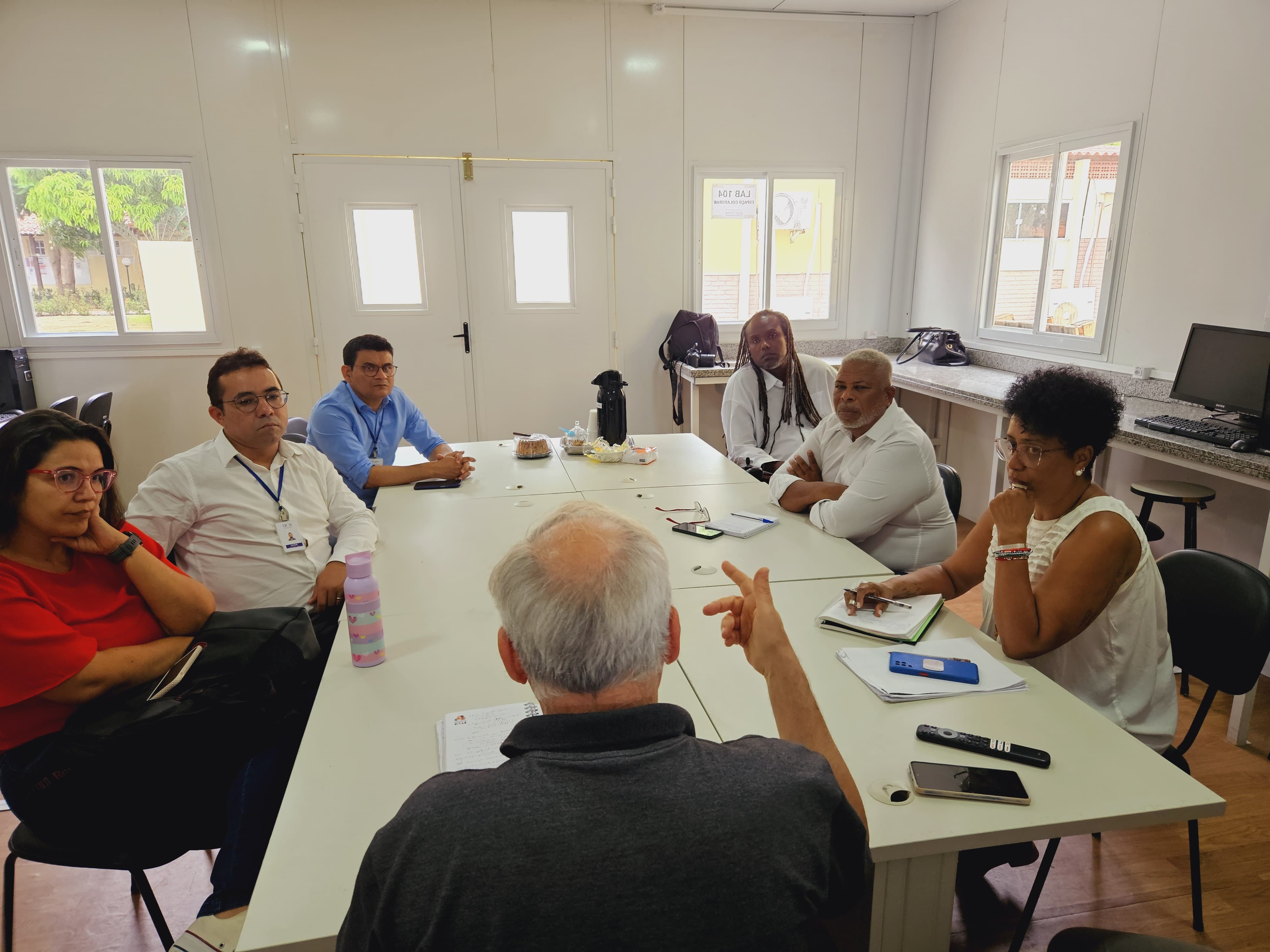 Pautas intersetoriais - Além do seminário, a equipe da Sudef/SJDH aproveitou a ocasião para participar de uma reunião com representantes da UFRB, com o intuito de tratar de pautas intersetoriais relacionadas às ações de inclusão e acessibilidade. Raimundo Nascimento, chefe de gabinete da secretaria, também participou da agenda, além do diretor e vice-diretor do Centro de Ciência e Tecnologia em Energia e Sustentabilidade (CETENS/UFRB), Jackson Machado e Odair Vieira; dos professores do Curso de Engenharia Assistiva e Acessibilidade do CETENS: Jesus Carlos, Susana Pimentel, Renata Mota e Nilmar de Souza.