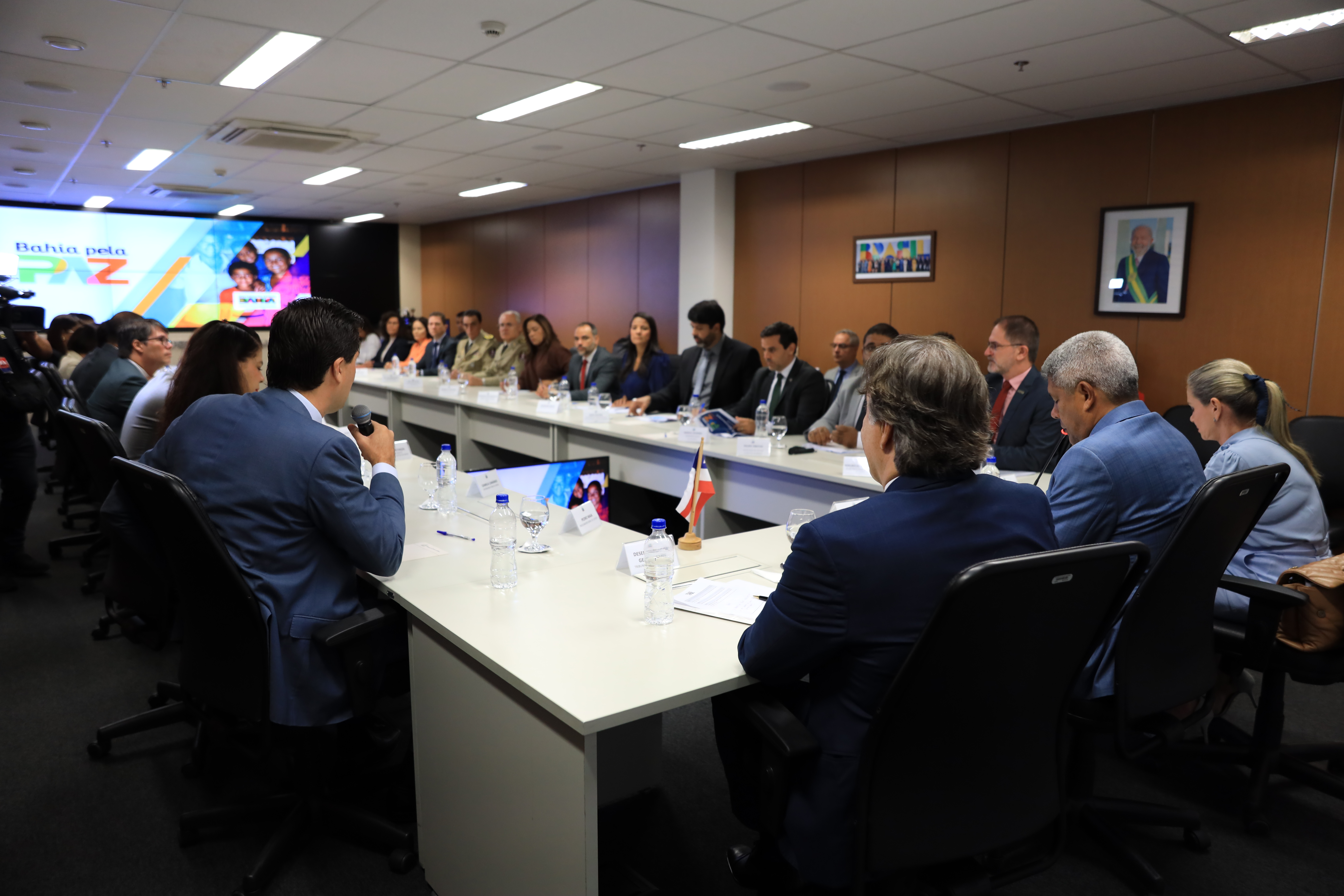 A 9ª Reunião do Comitê de Governança do Bahia pela Paz, iniciativa estratégica do Governo da Bahia, coordenada pela Secretaria de Justiça e Direitos Humanos (SJDH) para prevenir e combater a violência, foi realizada hoje (6), no Centro de Operações e Inteligência (COI), em Salvador. O encontro, formado por representantes dos poderes Executivo, Legislativo e Judiciário, além de representantes do Ministério Público e da Defensoria Pública, abordou indicadores, avanços e desafios do Programa. O encontro foi conduzido pelo governador Jerônimo Rodrigues, que abordou a importância desta instância de participação social para o debate qualificado e planejamento das ações do Programa.