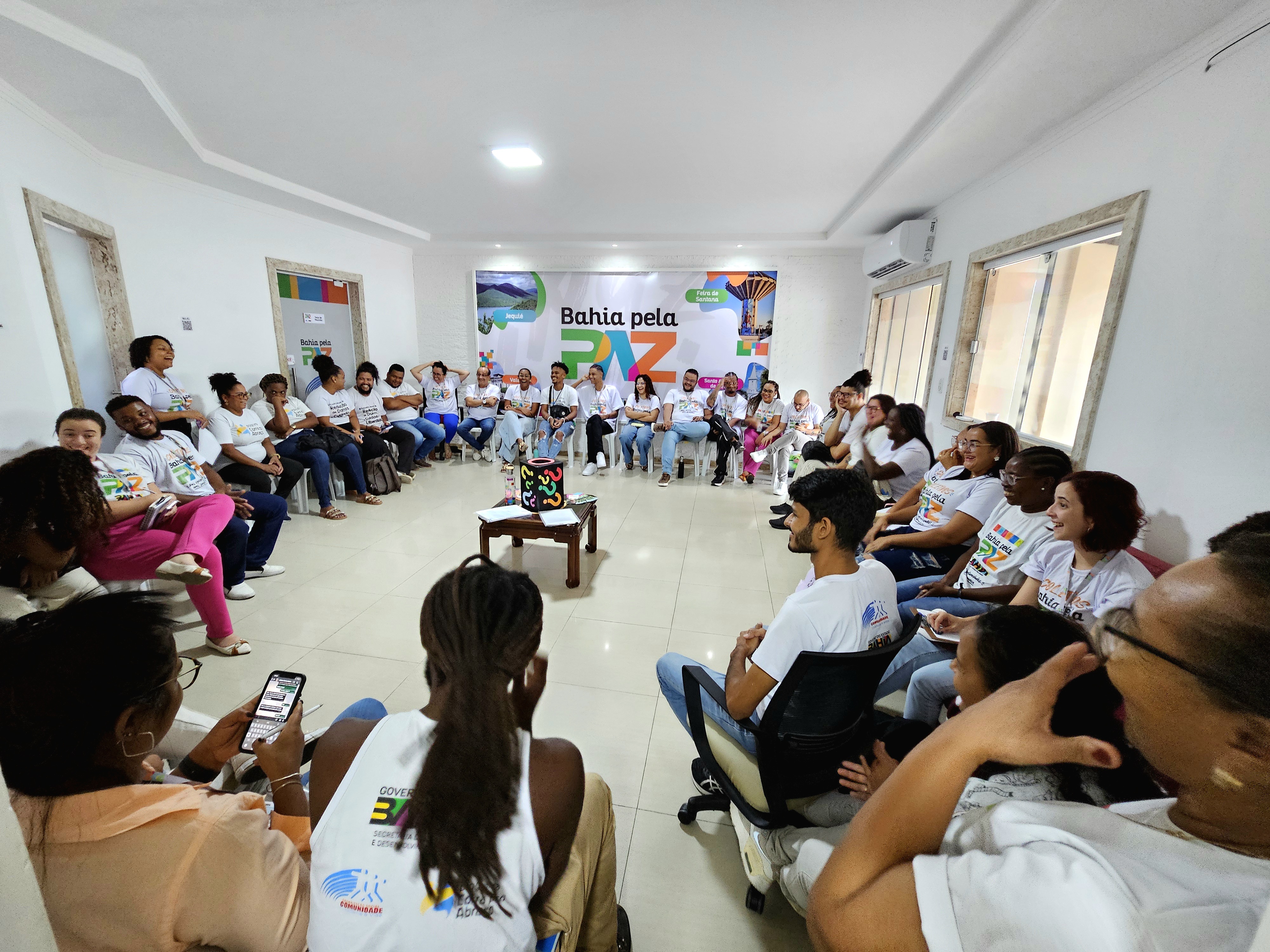 O encontro contou com dinâmica de socialização, apresentações institucionais e uma roda de conversa para troca de experiências e reforço de ações integradas entre as equipes técnicas do Corra pro Abraço e do Bahia pela Paz.
