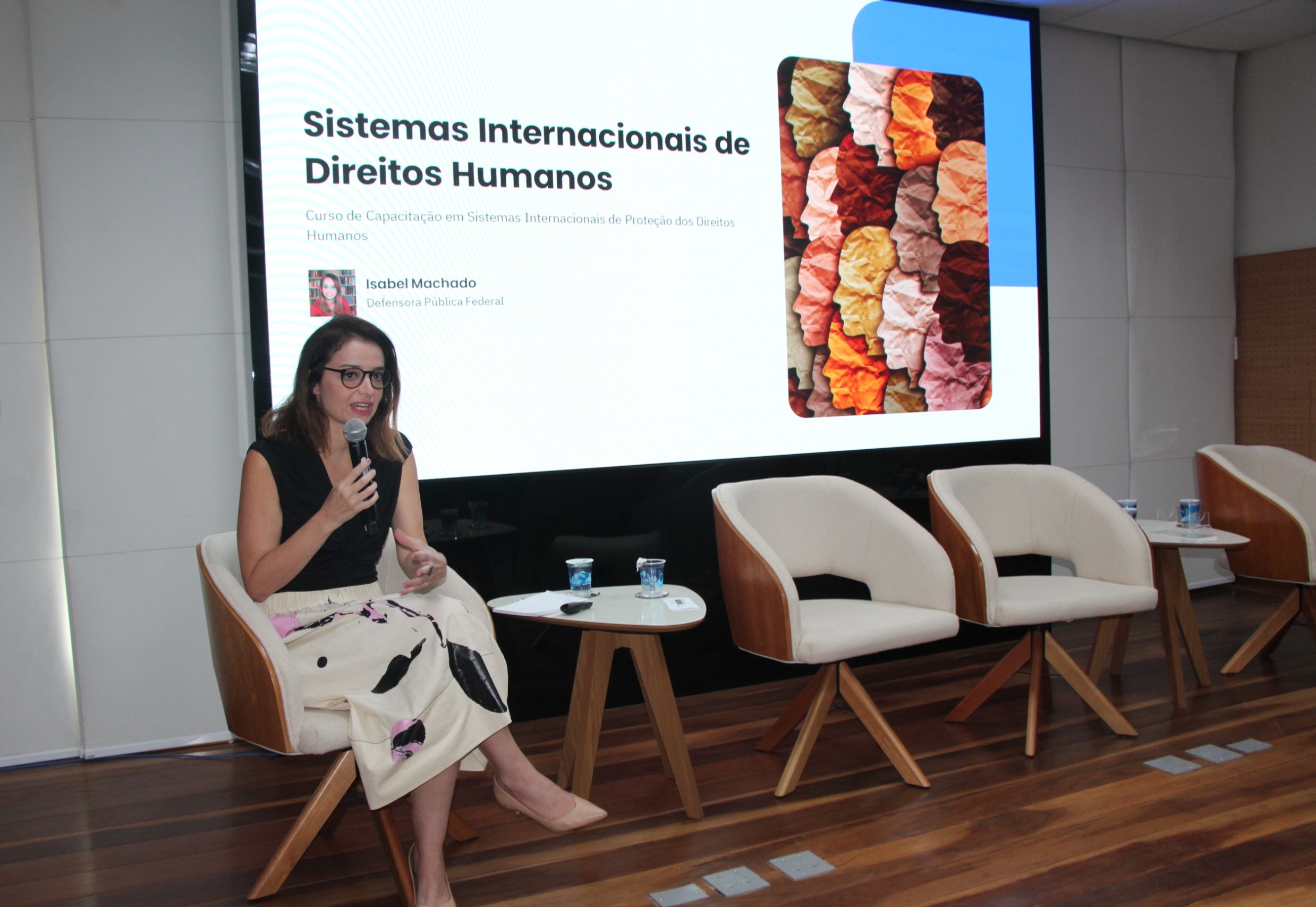 O curso está estruturado em dois módulos. No período da manhã, os participantes discutiram temas como ‘Teoria Geral dos Direitos Humanos e os Sistemas Internacionais de Proteção dos Direitos Humanos’. A condução ficou por conta de Ângela Pires e Isabel Penido, respectivamente, assessora Nacional do Alto Comissariado das Nações Unidas para os Direitos Humanos (ACNUD), e defensora Pública Federal.