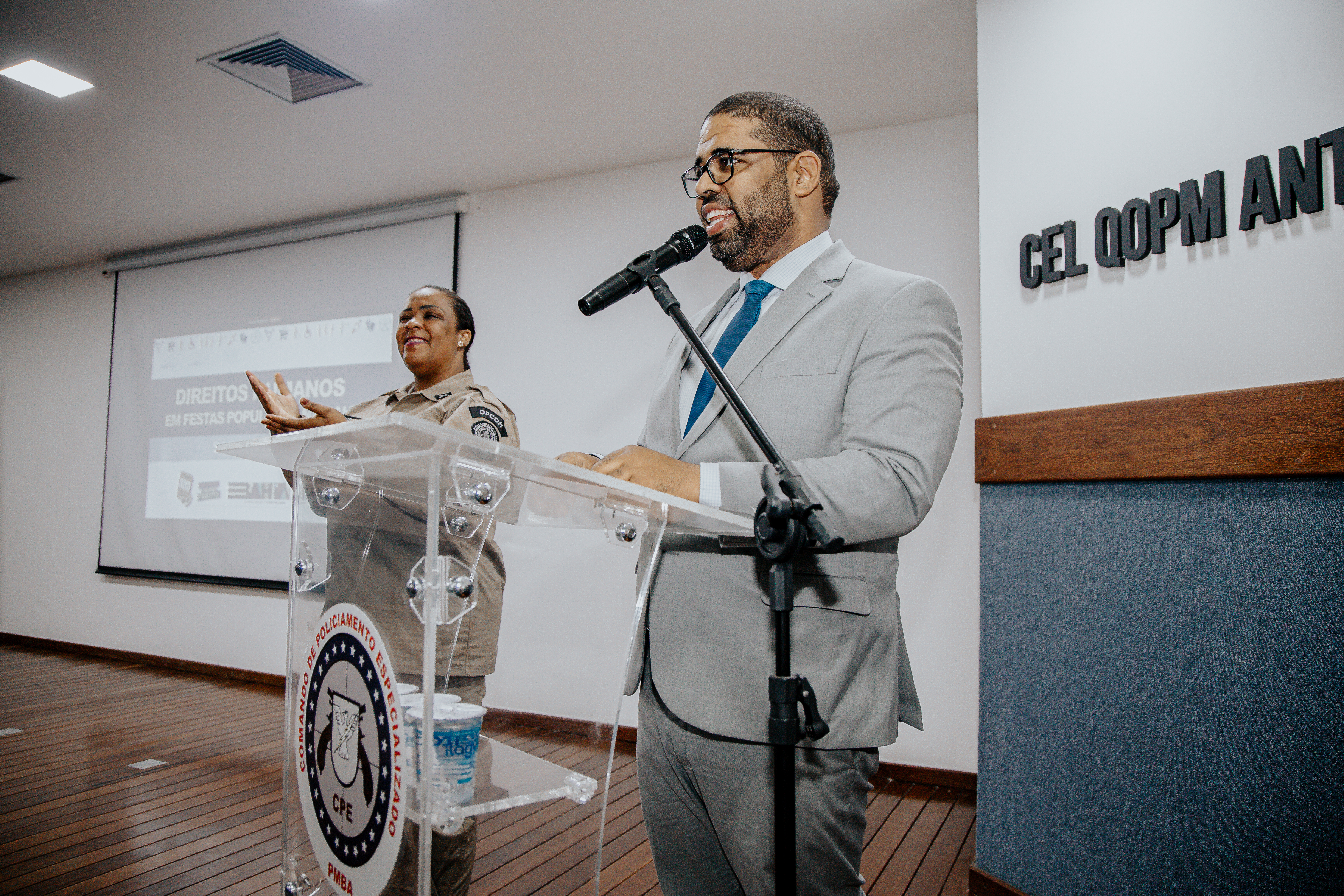 Em um estado onde o São João é celebrado por milhões, garantir que cada pessoa possa viver a festa com segurança e respeito é uma prioridade. Nesta segunda-feira, 16, a Secretaria de Justiça e Direitos Humanos da Bahia (SJDH), em parceria com a Polícia Militar da Bahia, realizou a formação das forças de segurança com foco na proteção dos direitos humanos durante os festejos juninos. A capacitação reuniu 205 agentes, entre policiais civis, polícia técnica, bombeiros e guardas municipais, no Batalhão Especializado em Policiamento de Eventos (BEPE), localizado no bairro de Pituaçu, em Salvador. A ação educativa também foi transmitida virtualmente para efetivos da PM em 24 municípios baianos.