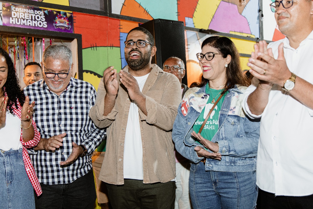 Toda a rede de proteção se reuniu, na Praça do Bosque, incluindo o secretário de Justiça e Direitos Humanos, Felipe Freitas, o prefeito do município, Getúlio Sampaio, a defensora- geral, Camila Canário, do deputado federal, Jorge Solla, e equipes de trabalho, para reafirmar o compromisso com a valorização da cultura popular e a defesa dos direitos.