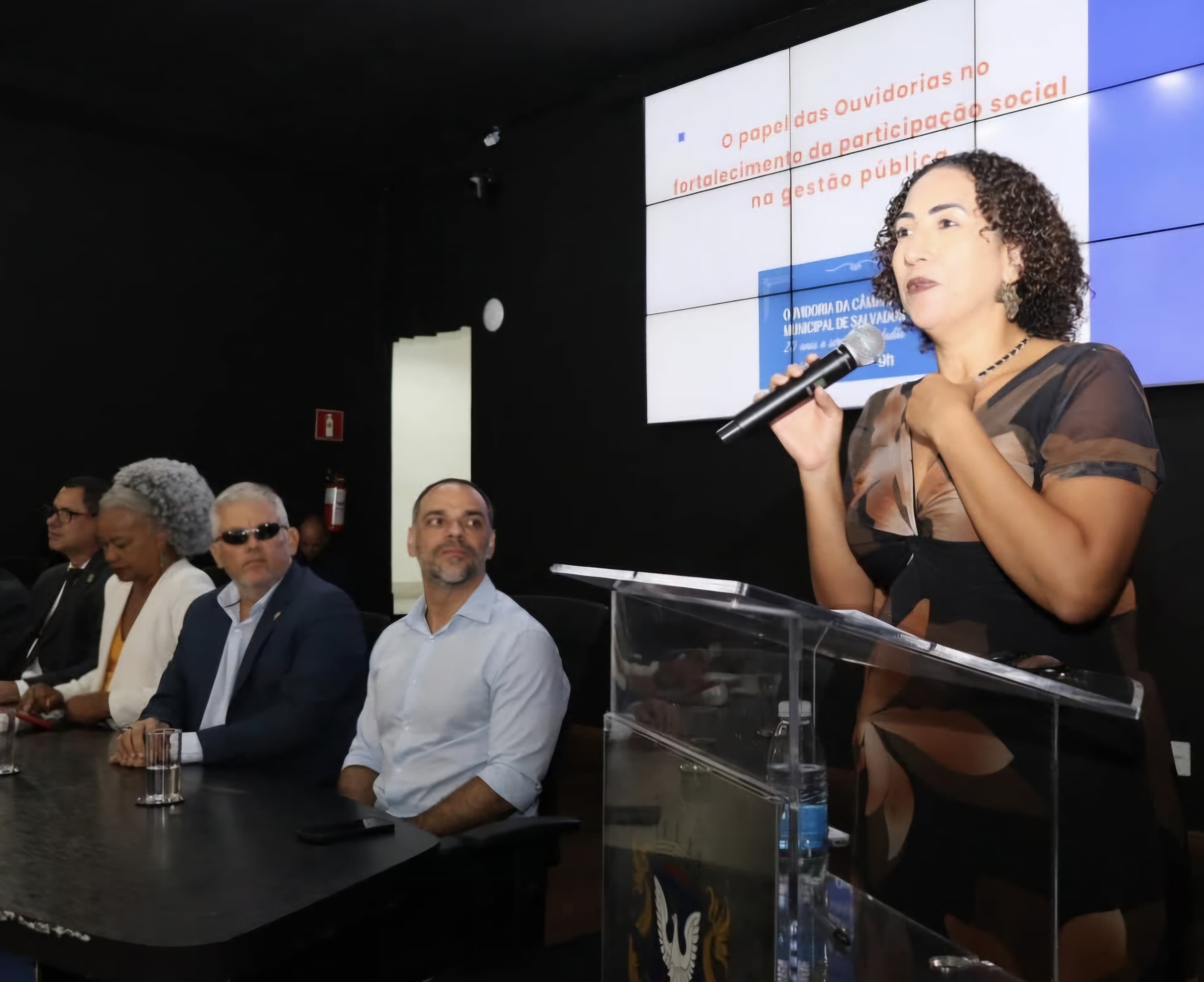 A ouvidora-geral da Secretaria de Justiça e Direitos Humanos (SJDH), Karla Meura, foi palestrante em atividade comemorativa da Ouvidoria da Câmara de Vereadores da capital baiana, na manhã desta quinta-feira (10). Intitulado “Ouvidoria da Câmara Municipal de Salvador - 20 anos a serviço do cidadão”, o evento reuniu ouvidores e ouvidoras de diversas instituições no Centro de Cultura Vereador Manuel Querino, na Praça Thomé de Souza.