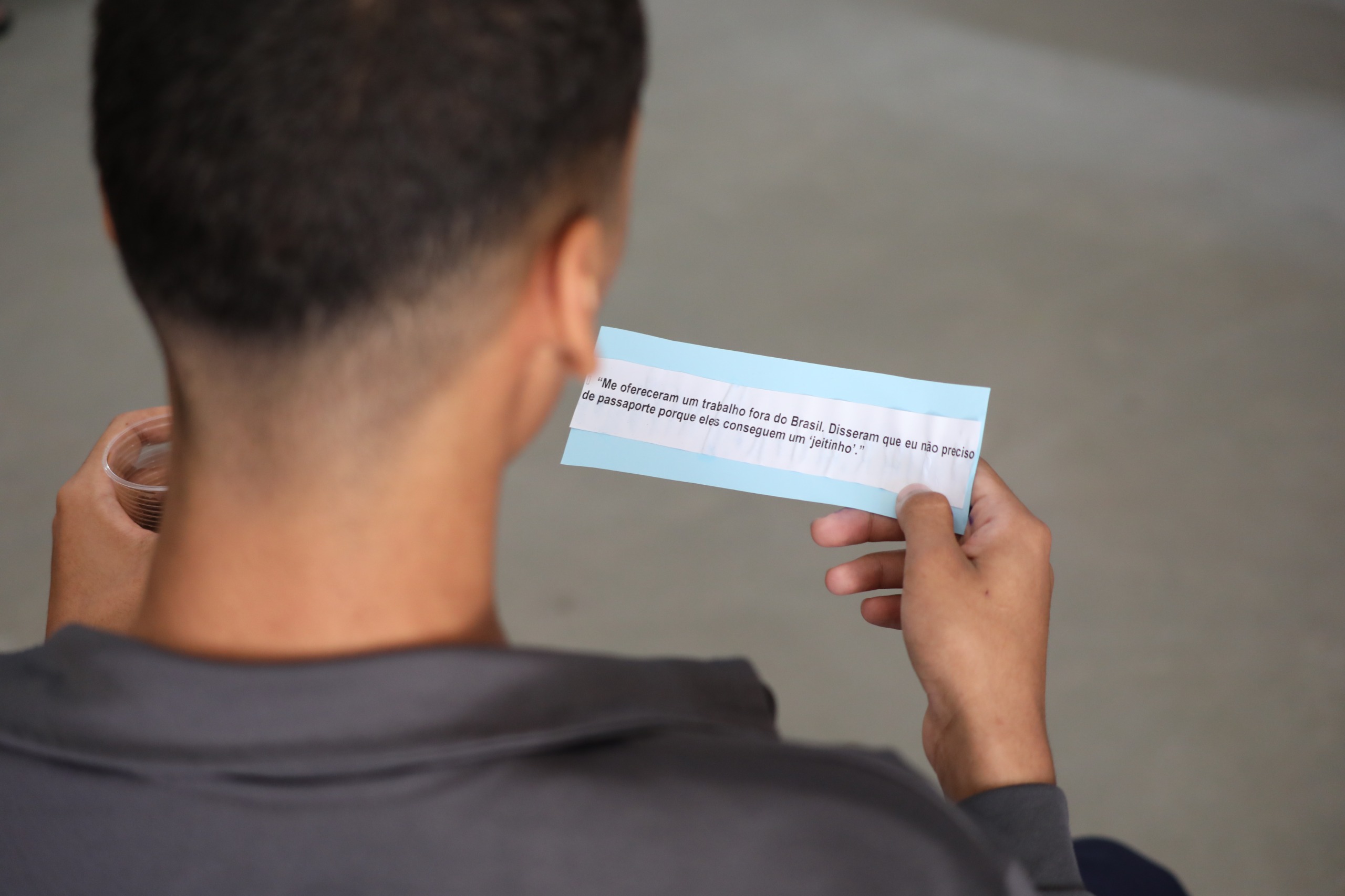 A ação de sensibilização da campanha envolveu também os adolescentes atendidos pela Fundac, autarquia da SJDH, com o objetivo de conscientizar e informar sobre os perigos do tráfico de pessoas. Eles participaram, na quarta-feira (30), de uma roda de conversa sobre ‘Tráfico de Pessoas e Trabalho Escravo’. A atividade teve como foco alertar os educandos e educandas para se protegerem dessa modalidade de crime, e como ajudar outras pessoas nessas situações. A dinâmica incluiu a leitura de gibis educativos, que retratam situações reais, com o intuito de promover a reflexão lúdica sobre a temática.