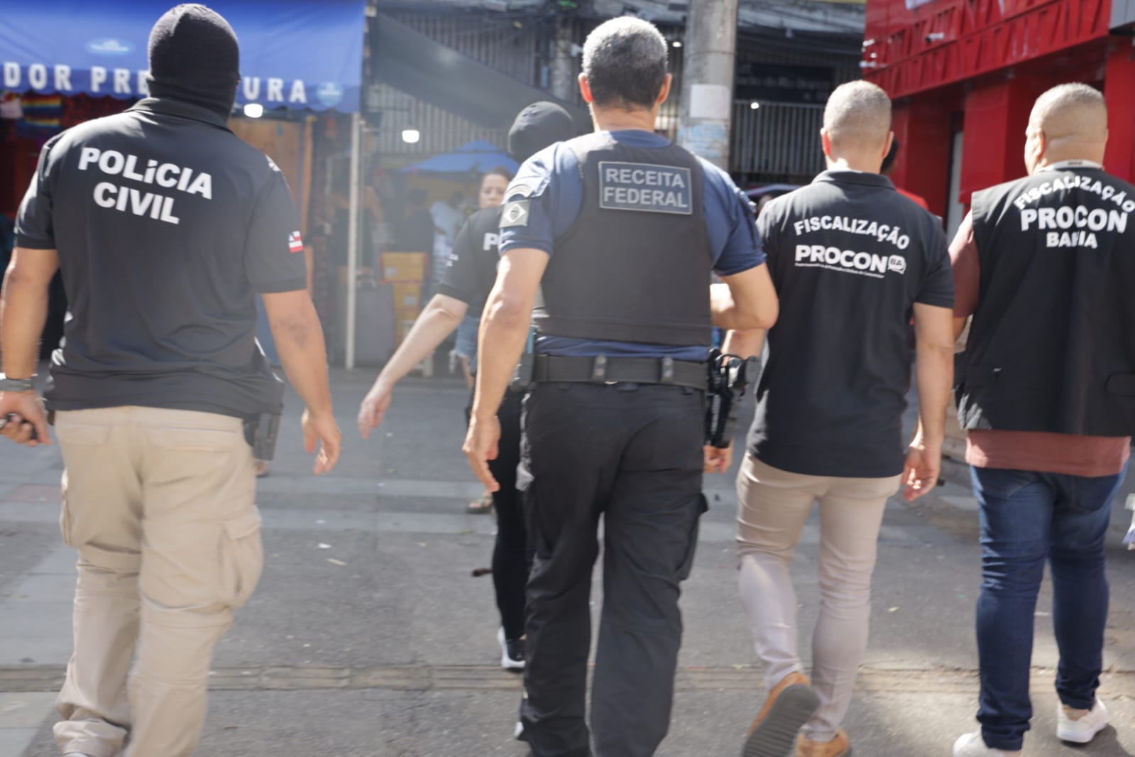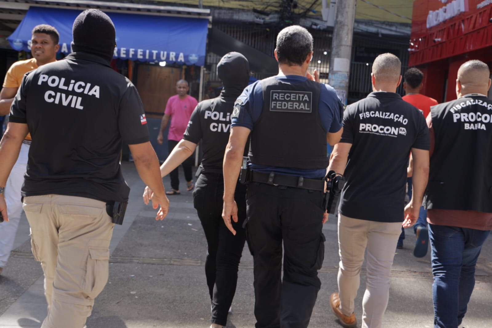 A ação é coordenada pela Polícia Civil, por meio dos Departamentos de Polícia Metropolitana (Depom), de Polícia do Interior (Depin), e Especializado de Investigações Criminais (Deic), além da Coordenação de Operações de Polícia Judiciária (COPJ). As visitas a estabelecimentos comerciais são realizadas de forma integrada, junto com equipes do Procon-Ba, da Sefaz e da Receita Federal, e incluem fiscalizações tributárias e repressão à sonegação fiscal.