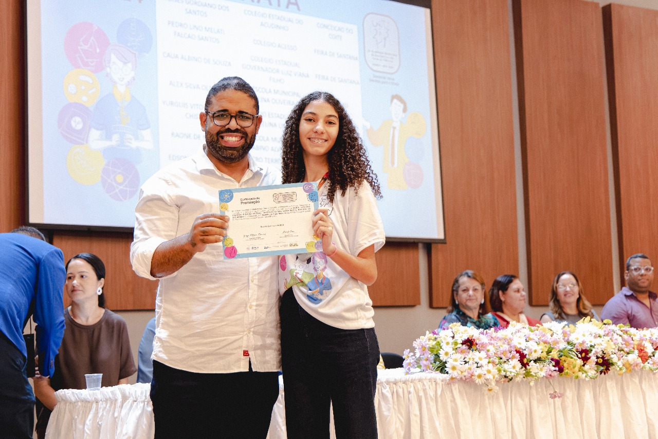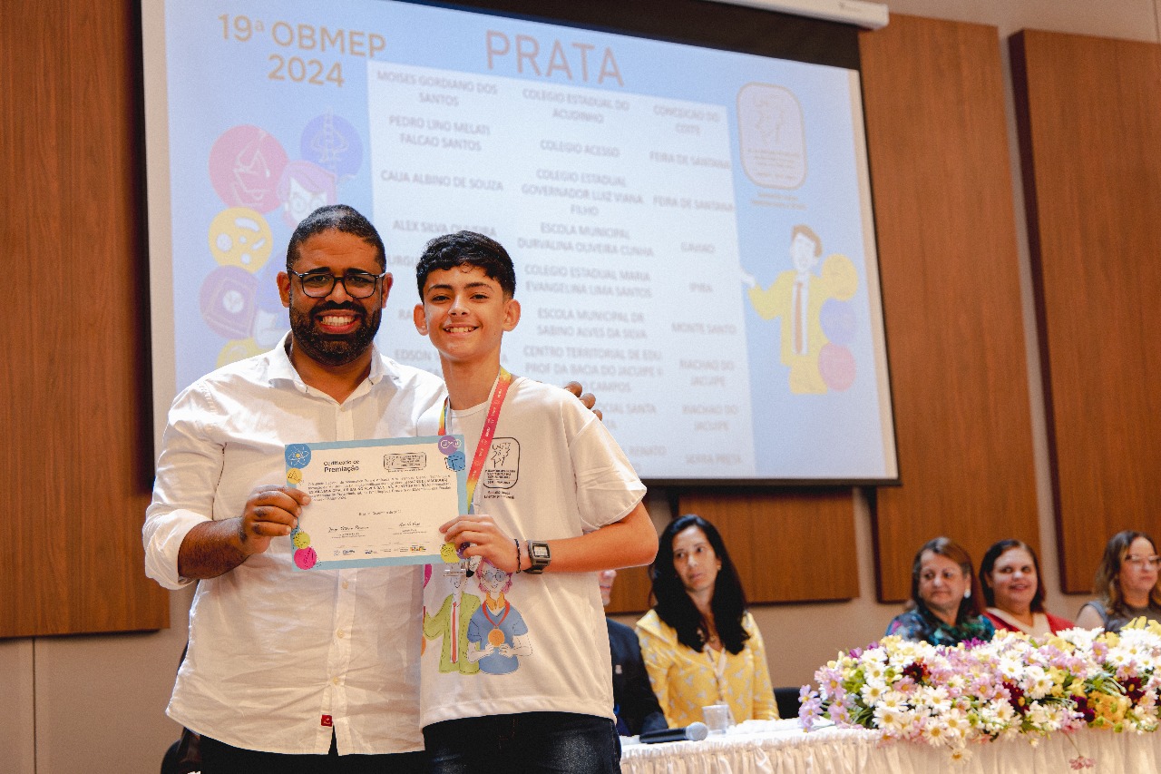 O secretário de Justiça e Direitos Humanos, Felipe Freitas, e a diretora da Fundac, Regina Affonso, participaram do ato no auditório da Secretaria Municipal de Educação, em Feira de Santana. A cerimônia reuniu estudantes das redes municipais e estaduais, professores, familiares e outras autoridades da cidade e de municípios vizinhos para celebrar o conhecimento. Na edição 2024 do concurso, 159 adolescentes assistidos pela Fundac se inscreveram na OBMEP, sendo que 32 deles foram aprovados para a segunda fase. Ao todo, foram premiados mais de 200 adolescentes dos Territórios Portal do Sertão e Bacia do Jacuípe.