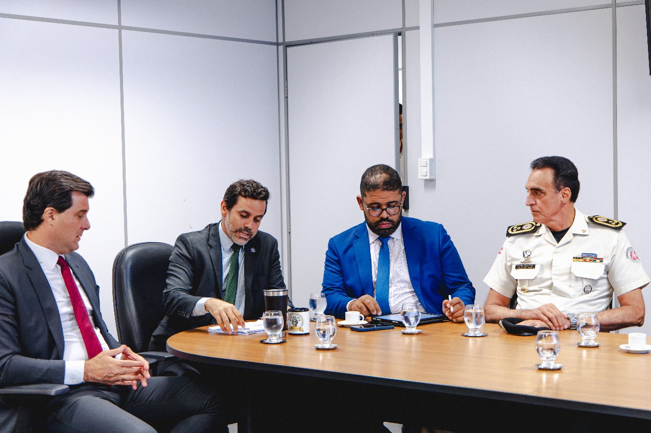 O Ministério Público da Bahia apresentou, em reunião ontem, dia 7, com as Secretarias de Justiça e Direitos Humanos (SJDH) e de Segurança Pública (SSP) e o comando-geral da Polícia Militar, um conjunto de propostas para aperfeiçoar a política de utilização de câmeras corporais pelas forças de segurança do estado. O encontro contou com a participação do procurador-geral de Justiça do MPBA, Pedro Maia, dos secretários Marcelo Werner (SSP) e Felipe Freitas (SJDH), do comandante-geral da Polícia Militar, coronel Antônio Magalhães.