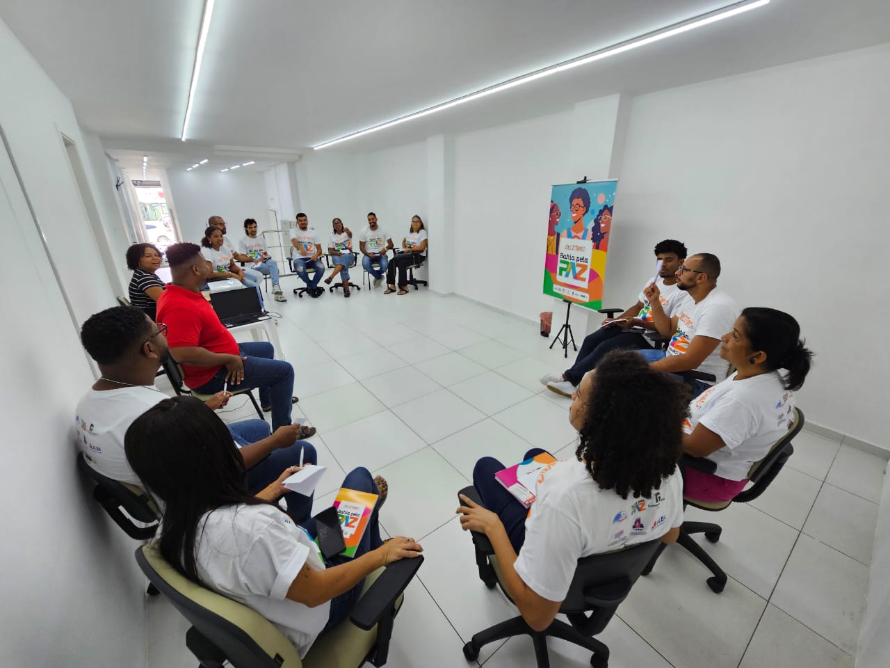 A chegada do novo Coletivo à Valença, município do Baixo Sul da Bahia, integra o processo de ampliação das ações do Programa Bahia pela Paz. As atividades da imersão foram antecedidas por dinâmicas integrativas e capacitaram a equipe para o uso dos instrumentos de trabalho, a partir da abordagem de temas como atendimento e acolhimento, juventudes e seus familiares, comunicação e práticas de escuta local. Também foram discutidos aspectos administrativos e organizacionais, alinhando metodologias e aprofundando o conhecimento sobre as finalidades do Programa Bahia pela Paz e dos Coletivos, bem como sua relação com os territórios.