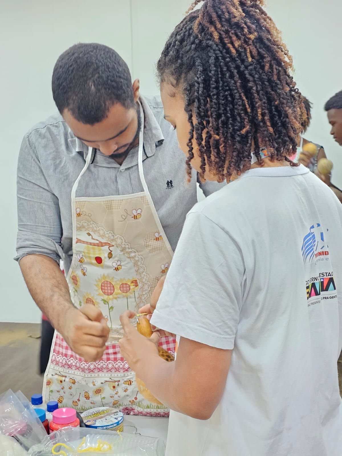 O jovem Pablo Matos, 22, participou, nesta segunda-feira (14), da Oficina de Pintura de Cabaças, realizada na sede do Coletivo Bahia Pela Paz Águas Claras, em Salvador. Enquanto pintava as frutas previamente preparadas para a atividade, Pablo lembrou-se da infância, de suas origens e sentiu uma “tranquilidade incomum” em meio às demandas do cotidiano.