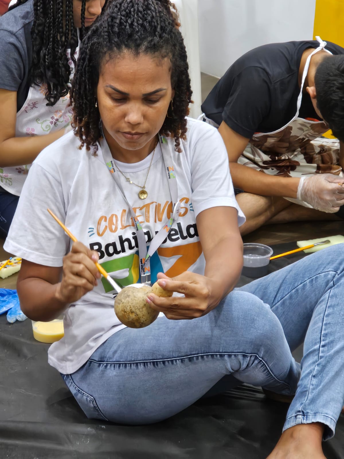 Oficina - A Oficina de Pintura de Cabaças marca o fechamento de um conjunto de ações voltado à construção de memórias e vínculos com o bairro de Águas Claras, contando também com saídas culturais para museus e oficinas de argila, além do espaço criado para estimular afetividades, intitulado Estação Sensorial da Memória. Uma vez pintadas, as cabaças irão compor uma exposição final. As atividades são oferecidas a jovens que já são acompanhados pelo Coletivo, fortalecendo e ampliando o vínculo entre a iniciativa estadual e a comunidade.