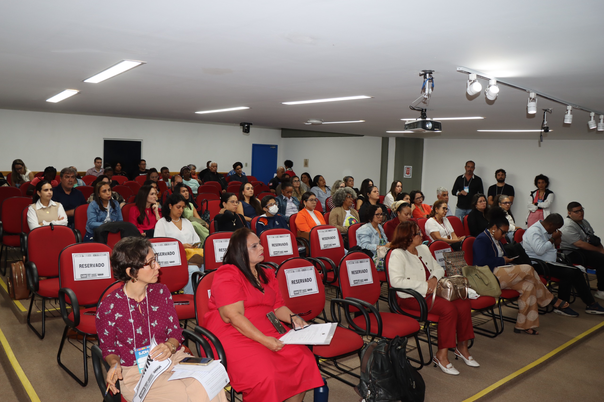 O titular da SJDH, Felipe Freitas, participou da abertura, convidando a plateia a refletir sobre o papel das mulheres no cuidado dos/as filhos/as  atípicos e como o direito do consumidor é um balizador importante para garantir os direitos das pessoas com TEA. A desembargadora do Tribunal de Justiça da Bahia (TJ-BA), Joanice Guimarães, o presidente do Conselho Estadual das Pessoas com Deficiência (Coede-BA), Sidney Borges, e o superintendente da Sudef, Marcelo Zig, também participaram da roda de conversa.