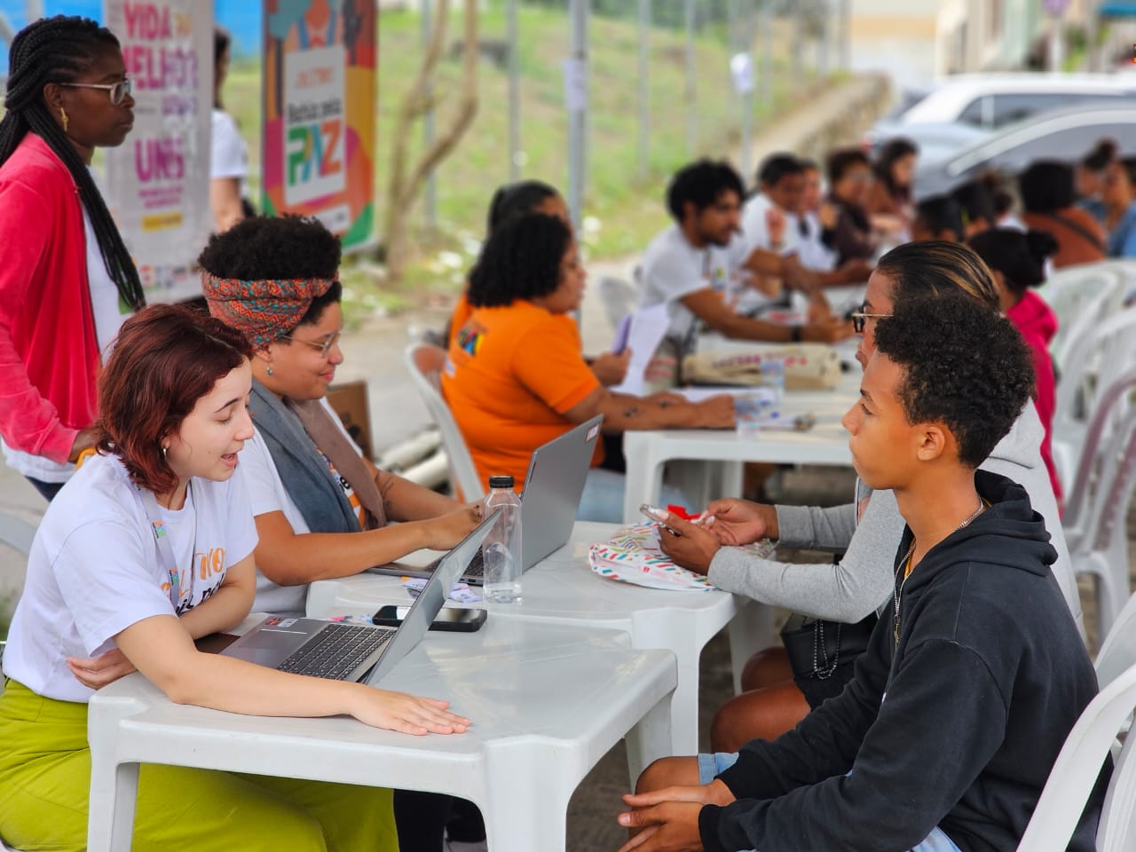 Quem passou pela entrada do Conjunto Habitacional Videiras, no bairro Mangabeira, em Feira de Santana, n dia 23 de outubro, notou a movimentação gerada pela segunda edição do Conexão Mangabeira, evento promovido pelo Coletivo Bahia pela Paz Mangabeira. A ação ofereceu diversos atendimentos para jovens e suas famílias, incluindo emissão de ID Jovem e cadastros em programas sociais, de aprendizagem e estágio, além de rodas de conversas que dialogaram sobre a temática “Laços que cuidam: família, redes de cuidado e relações saudáveis”.