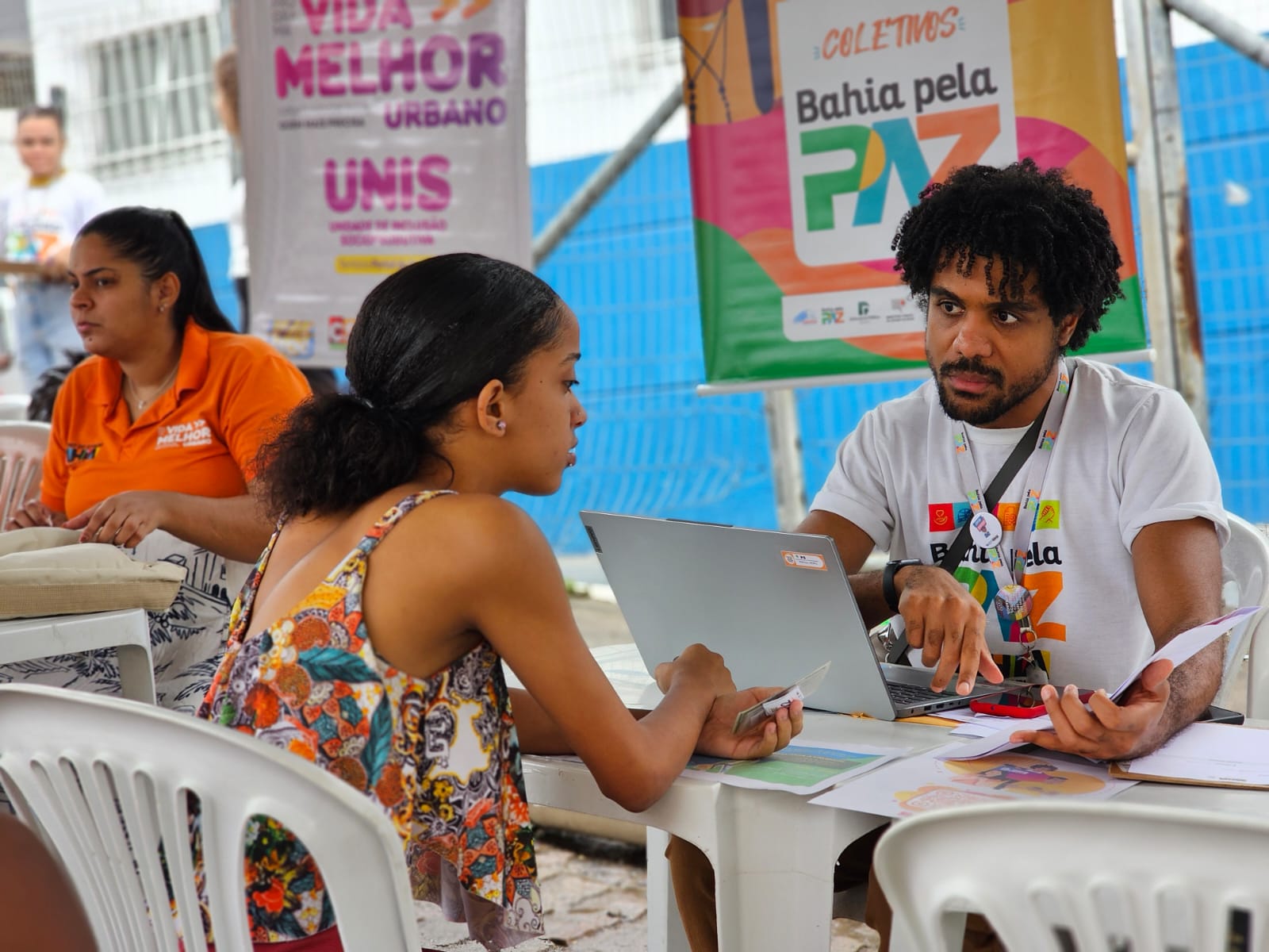 A ação contou com a parceria da Unidade de Saúde Videiras e com a participação de representantes do CIEE Jovem Aprendiz, do e-Multi (Equipes Multiprofissionais na Atenção Primária à Saúde) e do Movimento de Organização Comunitária (MOC), com os programas Vida Melhor Urbano e Qualifica Bahia, conforme explica a coordenadora do Coletivo Bahia pela Paz Mangabeira, Juliana Carmo.