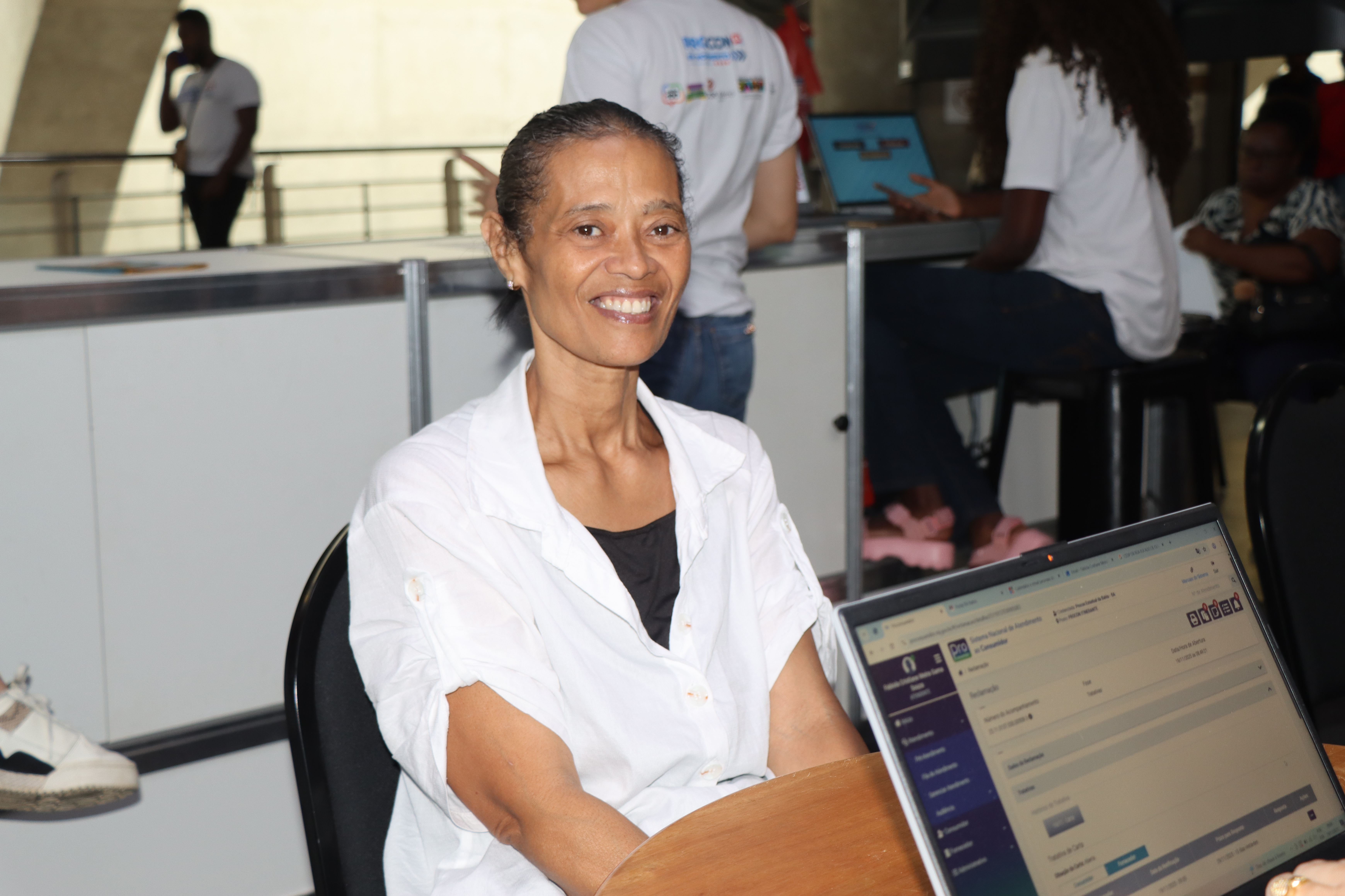 “Vi o posto de atendimento e parei para resolver uma situação com o banco referente a um débito que já estava pago. O empréstimo foi descontado indevidamente na conta de luz. Então, aproveitei o Procon pra resolver essa situação”, contou dona Valdeline Paixão.