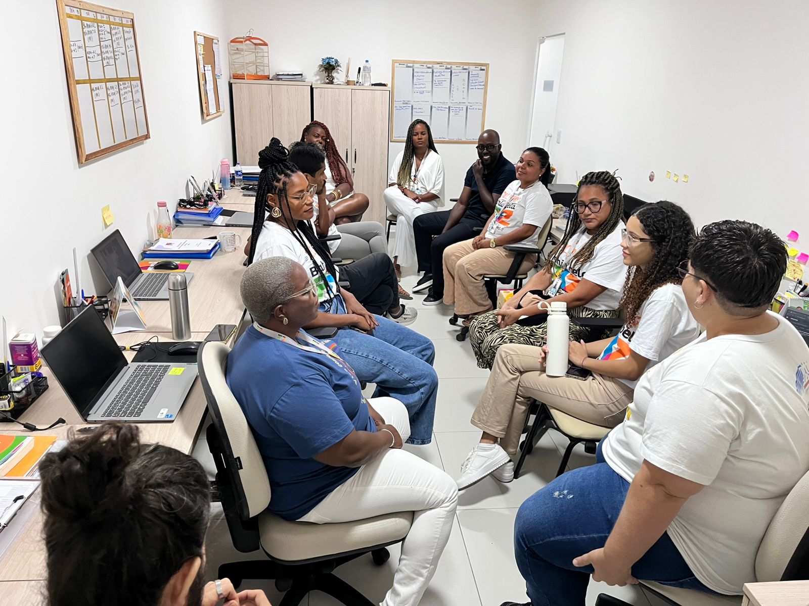 Na ocasião, o Coletivo apresentou sua atuação a partir da perspectiva da segurança pública preventiva, destacando o trabalho territorial, a escuta comunitária, as articulações intersetoriais e as estratégias construídas em diálogo com as comunidades do território da Liberdade. Também foram apresentados os núcleos do Coletivo e a forma como as ações se organizam para responder às demandas locais, especialmente aquelas relacionadas à proteção de adolescentes e jovens.