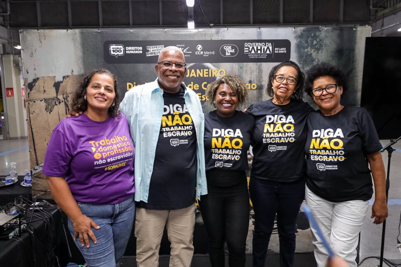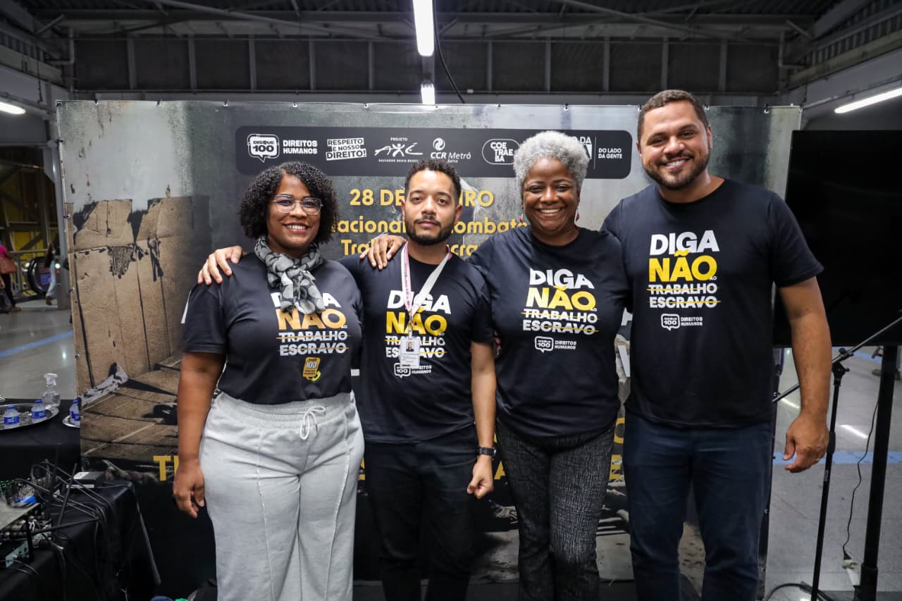 Com emoção, escuta ativa e compromisso coletivo, a Secretaria de Justiça e Direitos Humanos da Bahia (SJDH) e o Metrô Bahia realizaram, na última quarta-feira (28), o Ato pela Erradicação do Trabalho Escravo, na Estação de Metrô da Rodoviária (Iguatemi), em Salvador. A mobilização integrou a programação do Dia Nacional de Combate ao Trabalho Escravo, reunindo órgãos públicos, entidades da sociedade civil e usuários do transporte público em um dos pontos de maior circulação da capital.