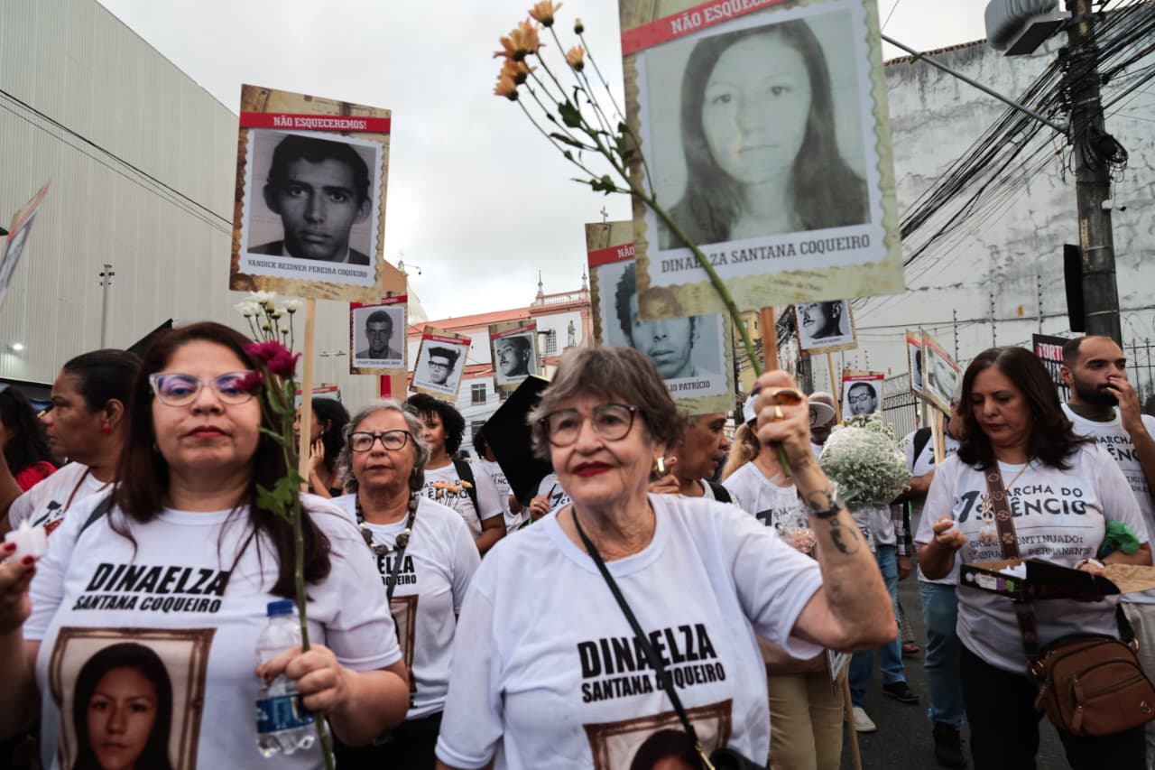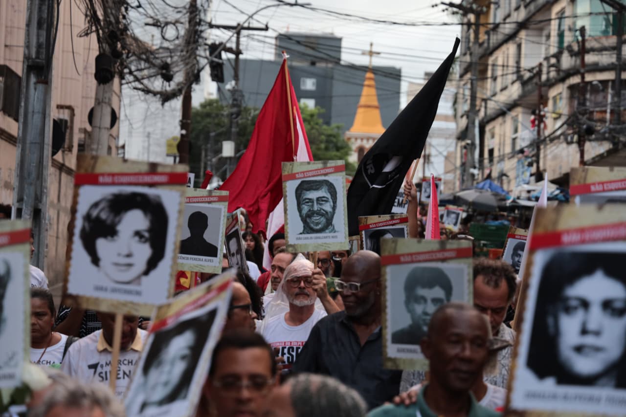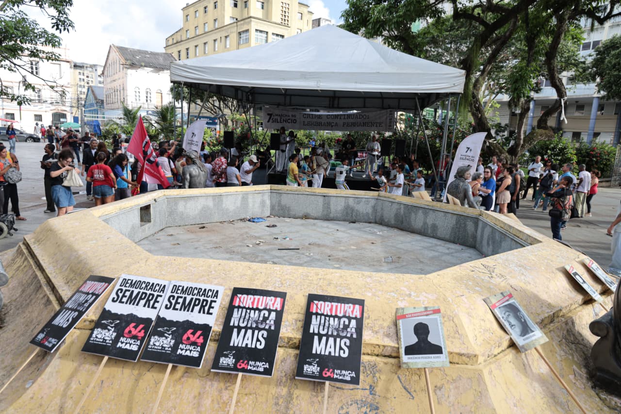 A luta pela democracia e preservação da memória coletiva mobilizou estudantes, ativistas dos direitos humanos, familiares das vítimas da ditadura militar e diversas autoridades para 7ª Marcha do Silêncio, realizada nesta quarta-feira (1°), em Salvador. O ato, que teve como tema 'Crime Continuado: Lembrança Permanente', relembrou os 62 anos do Golpe Militar, um dos mais tristes períodos da história do Brasil. A Secretaria de Justiça e Direitos Humanos (SJDH) participou do evento, reafirmando o compromisso de fortalecer as ações que promovem a preservação da memória e da verdade, além da construção de um país justo e democrático. A Marcha do Silêncio iniciou na Praça da Piedade com apresentações de capoeira e de poesia, destacando a arte como instrumento de formação social e resistência.