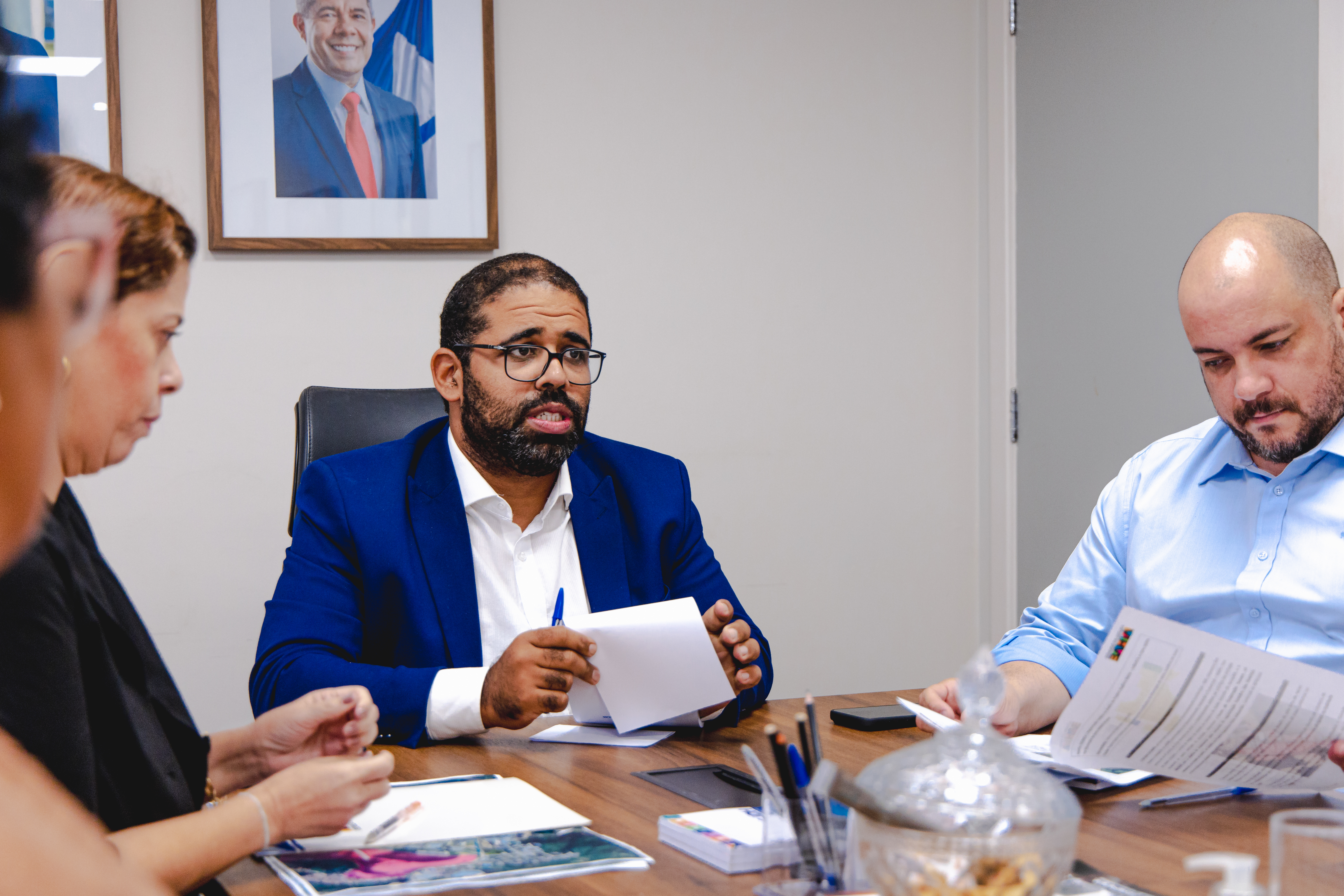 O Governo da Bahia, através das Secretarias de Justiça e Direitos Humanos (SJDH) e Desenvolvimento Econômico (SDE), se reuniu na quinta-feira (16), com representantes do Instituto 11 de Dezembro para discutir estratégias conjuntas que visam impulsionar o desenvolvimento de Santo Antônio de Jesus e região. Com a instalação de novas indústrias no município, o diálogo com as lideranças do movimento avaliou a construção de parcerias para incentivar a abertura de vagas de emprego e capacitação profissional para os moradores de SAJ, familiares e vítimas da explosão da fábrica de fogos. O titular Felipe Freitas, da SJDH, o secretário interino Aécio Moreira, da SDE, e técnicos das pastas integraram a comitiva.