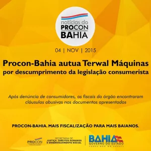 Procon-BA autua Terwal Máquinas por descumprimento da legislação consumerista