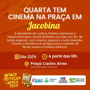 Governo da Bahia promove sessão de cinema em Jacobina nesta quarta-feira (23)