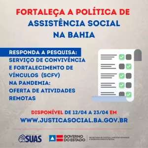 SJDHDS lança pesquisa sobre a oferta do Serviço de Convivência e Fortalecimento de Vínculos na pandemia; Participe