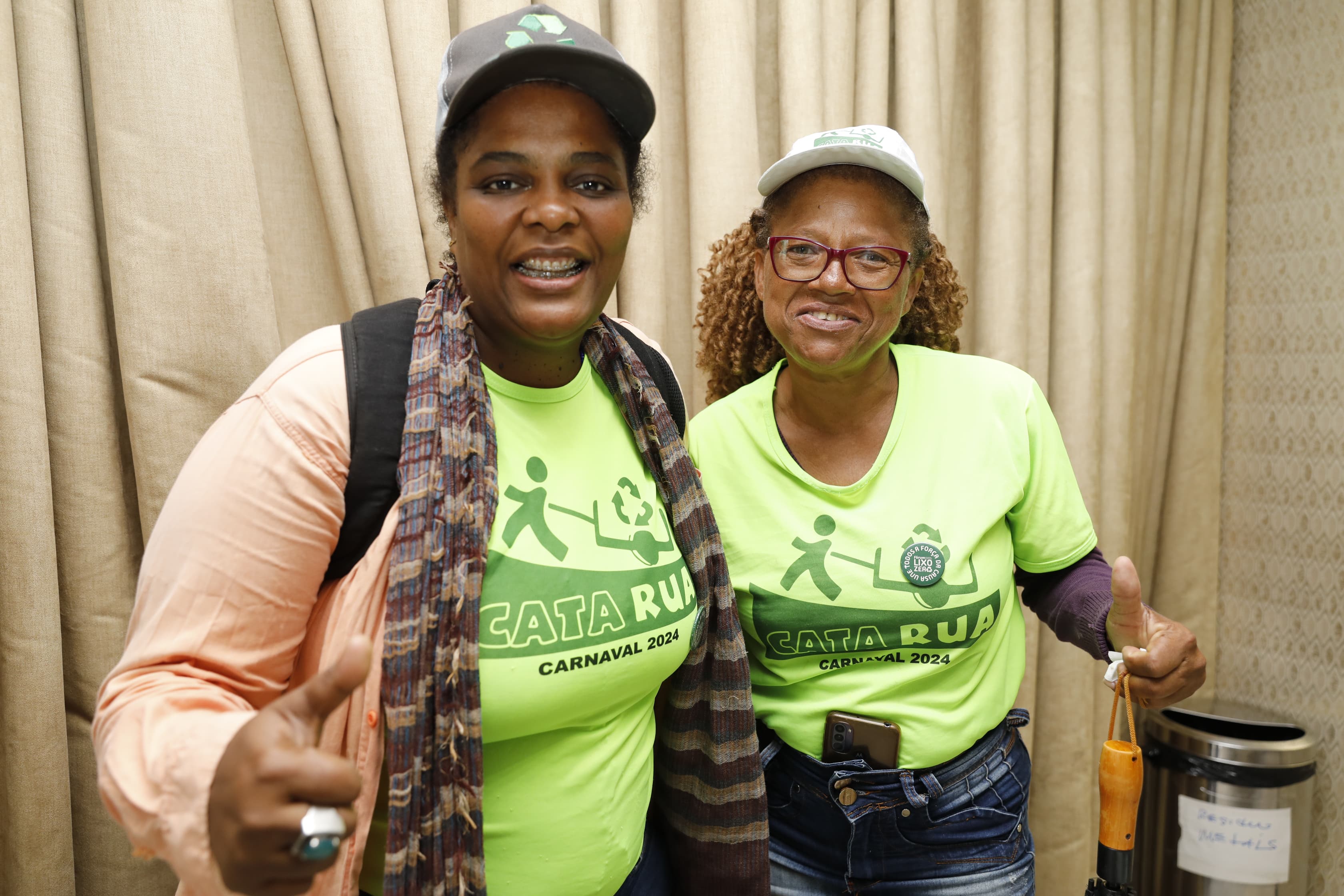 Durante o evento, uma situação chamou a atenção na plateia, uma participante que a todo momento era solicitada para fotos e conversas, se tratava de Aline Souza, catadora e estudante de direito que colocou a faixa na posse do presidente Lula. “Estou aqui representando a Central de Cooperativas do Distrito Federal, mas é inevitável não relembrar deste momento histórico para todos nós catadores, estar no momento mais importante de nossa democracia, a posse de um presidente. Em cada espaço de diálogo que participamos levamos a importância de um sistema eficiente de gestão de resíduos, que caminhe dentro dos protocolos e dos pactos internacionais, na questão do meio ambiente e do clima. Então, falar de lixo zero hoje, participar do fórum é saber que a gente tá plantando uma sementinha que lá na frente as futuras gerações irão colher de fato qualidade de vida e dignidade nas rotinas de trabalho”.