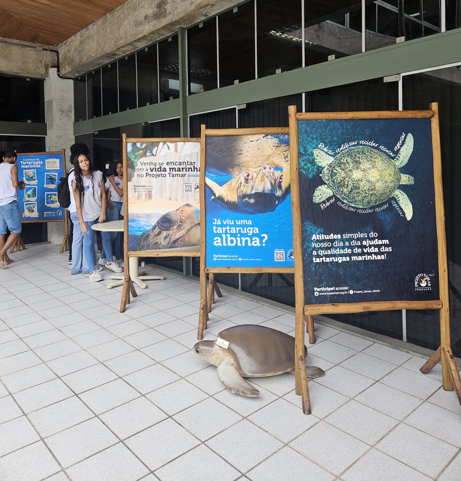 A bibliotecária da Biblioteca do Meio Ambiente Milton Santos, Nádia Cristina, destaca que na semana do Meio Ambiente, a biblioteca trouxe a exposição do Projeto Tamar para falar sobre a importância da preservação dessas espécies. “O Projeto Tamar está vindo com alguns tótens e algumas réplicas das Tartarugas, onde eles explicam essa parte de manutenção das espécies, conservação e da captura desses animais e soltura também depois do período que eles estão tratados e monitorados. Além dessa exposição, estamos com alguns materiais que deixamos disponíveis sobre temas da área ambiental, vamos estar recebendo algumas escolas e falando sobre conservação do Meio Ambiente”, salientou Nádia.