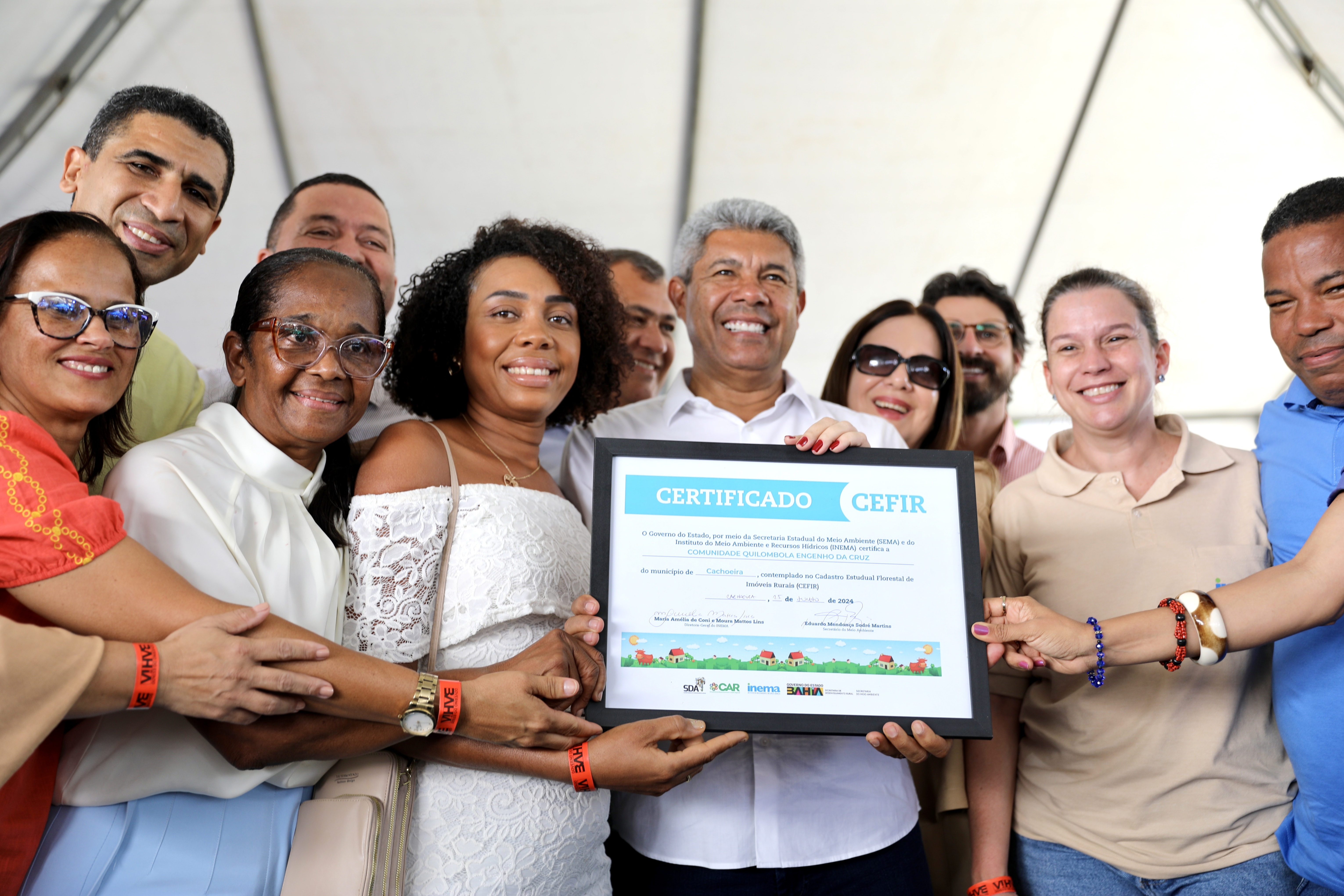 Em mais um passo significativo para a regularização ambiental na Bahia, o governador Jerônimo Rodrigues entregou neste sábado (29) 1.142 certificados do Cadastro Estadual Florestal de Imóveis Rurais (Cefir) a famílias de seis comunidades quilombolas em Cachoeira. O projeto, integrado ao Quilombo Legal e com um investimento de R$ 150 mil, alcançou as comunidades de Catolé de Baixo e de Cima, Engenho Novo, Engenho da Cruz, São Francisco do Paraguaçu, Santiago do Iguape e Imbiara/Tombo.