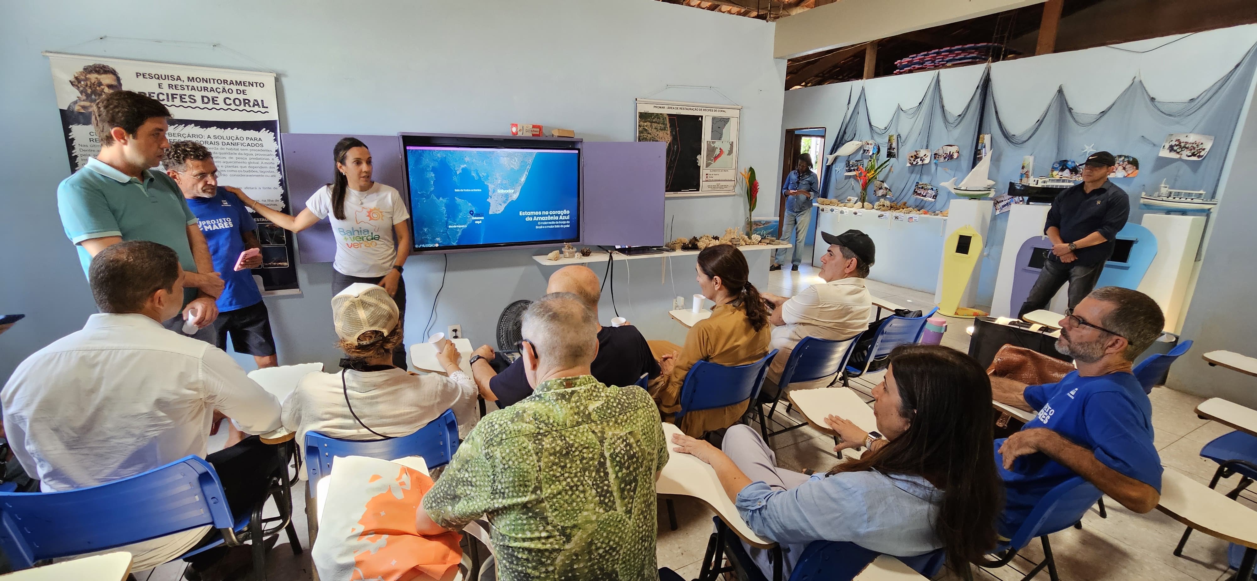 Para conhecer de perto um projeto pioneiro de restauração de corais marinhos na Baía de Todos-os-Santos (BTS), apoiado pelo Governo do Estado, uma delegação francesa visitou, nesta quinta-feira (24), a sede da ONG socioambiental PRÓ-MAR, localizada na ilha de Mar Grande, município de Vera Cruz. A iniciativa é parte de um conjunto de políticas públicas e ações, lideradas pela Secretaria do Meio Ambiente (Sema) e o Instituto do Meio Ambiente e Recursos Hídricos (Inema), para a conservação, inclusão social e econômica da BTS, região considerada capital nacional da Amazônia Azul.
