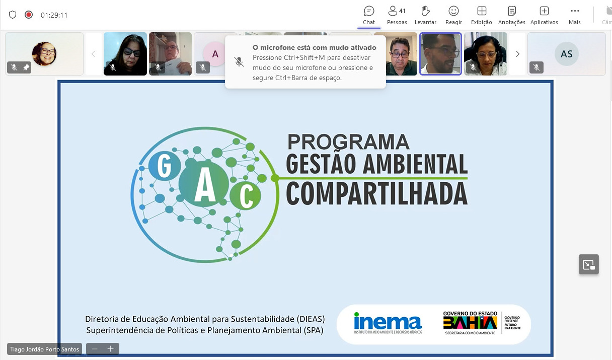 O Conselho Estadual do Meio Ambiente (CEPRAM) realizou nesta sexta-feira (25), sua 425ª Reunião Ordinária. A pauta da última reunião deste ano, que aconteceu de forma virtual, incluiu como destaque a apresentação dos Programas de Gestão Ambiental Compartilhada (GAC) e Bahia Sem Fogo, além de oferecer encaminhamentos em relação à análise dos processos discutidos na 68ª Reunião da Comissão Técnica Recursal (CT Recursal), ocorrida no mês de agosto.