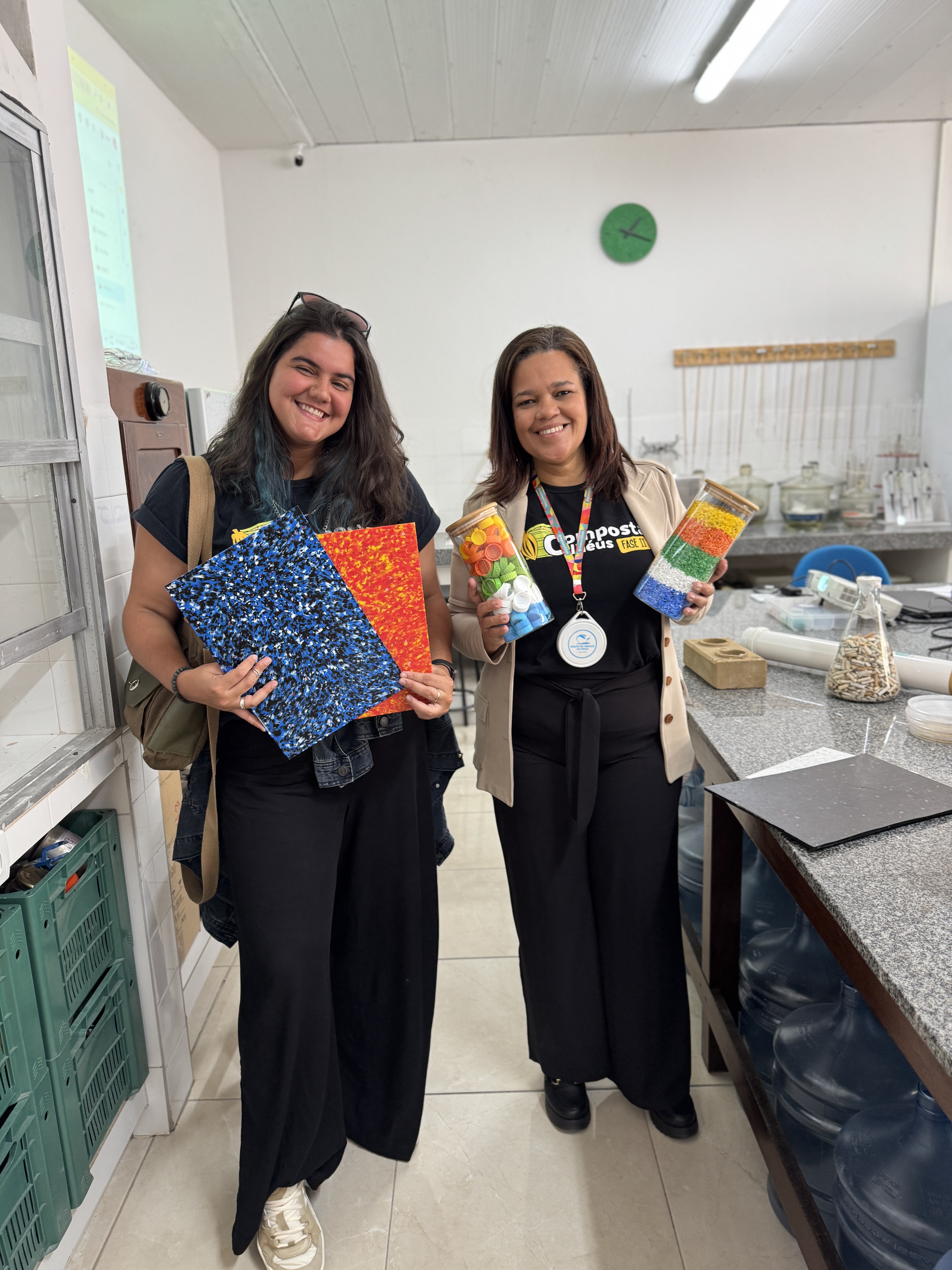 A experiência incluiu uma imersão no Laboratório de Estudos em Química Ambiental da Universidade Federal da Paraíba (UFPB), onde o grupo conheceu o Projeto Mares sem Plástico, coordenado pela professora Dra. Cláudia Cunha. O projeto se dedica a promover ações de educação ambiental e pesquisa científica, potencializando a circularidade do plástico e um futuro mais limpo e sustentável.