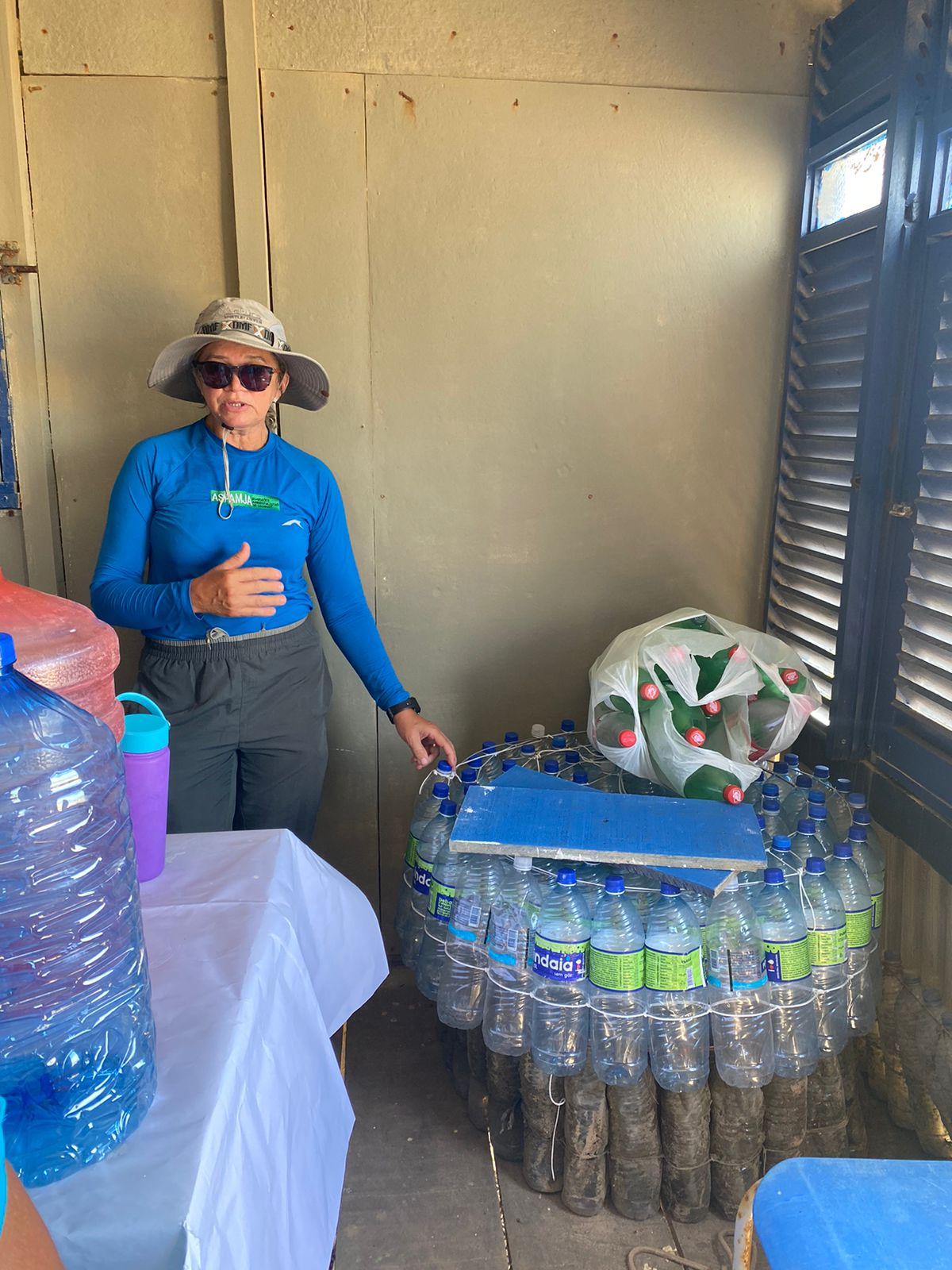 A agenda seguiu com a Associação de Sustentabilidade dos Pescadores, Ambientalistas e Moradores da Praia de Jacarapé (Aspamja), que compartilhou suas práticas de conservação costeira, como limpeza de resíduos, restauração de manguezais e uso de fossas ecológicas. À tarde, no Laboratório de Ecologia Aquática da UFPB, o GAP conheceu de perto tecnologias inovadoras, como fossas ecológicas e ecobarreiras fitorremediadoras (estruturas flutuantes que bloqueiam o escoamento de resíduos sólidos em corpos d'água), promissoras para a proteção de rios e barragens.