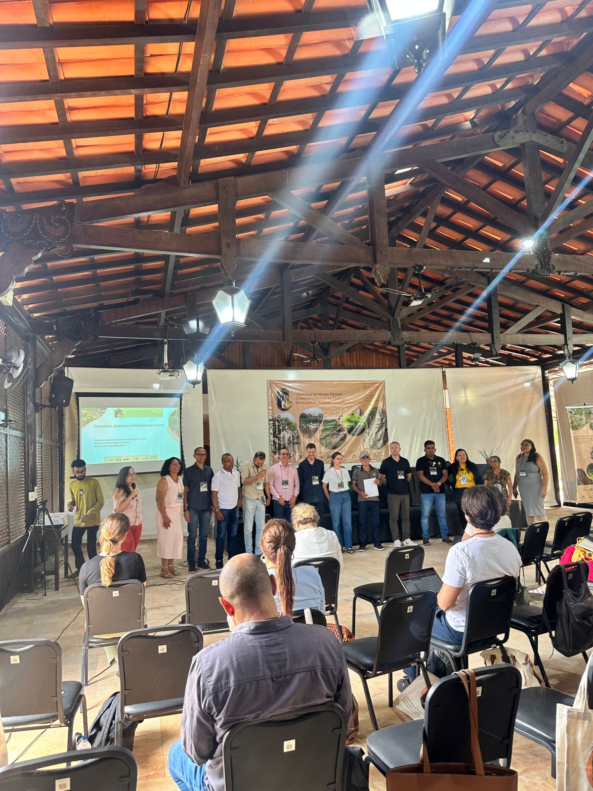 O primeiro dia do evento, foi marcado por quatro apresentações no contexto e dos objetivos pelo Serviço Florestal Brasileiro (SFB), seguida por quatro painéis temáticos. O primeiro painel abordou os produtos florestais não-madeireiros, destacando experiências, desafios e oportunidades. O segundo painel tratou do uso múltiplo, diversificação produtiva e acesso a mercados para produtos florestais. No terceiro painel, foram apresentadas experiências relacionadas aos pagamentos por serviços ambientais na Caatinga, e o quarto painel discutiu os produtos florestais madeireiros, também com foco em desafios e oportunidades.