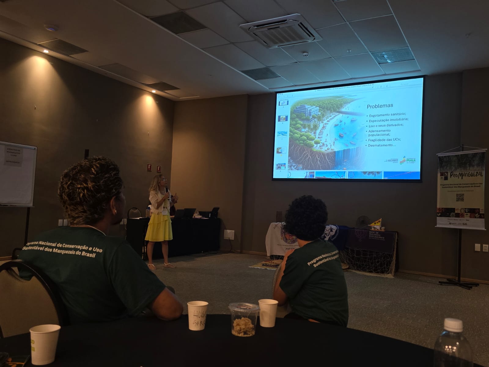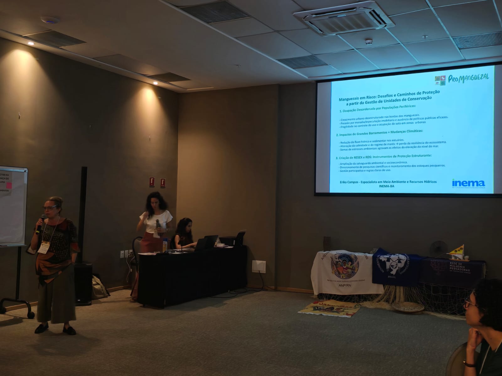 A Oficina do ProManguezal possibilitou a troca de experiências entre especialistas e gestores ambientais. Representando a Bahia, Erika Valeska Meirelles Campos, especialista em Meio Ambiente e Recursos Hídricos do Inema e gestora das Áreas de Proteção Ambiental (APA) Baía de Camamu Costa de Itacaré/Serra Grande, trouxe a visão prática da gestão de unidades de conservação que integram áreas de manguezais, destacando os principais desafios enfrentados na proteção desses ecossistemas. "Entre eles, a ocupação desordenada por populações periféricas, os impactos dos grandes barramentos e das mudanças climáticas, que afetam diretamente a resiliência dos manguezais, e a necessidade de fortalecer instrumentos como as Reservas Extrativistas e as Reservas de Desenvolvimento Sustentável", afirmou Erika.