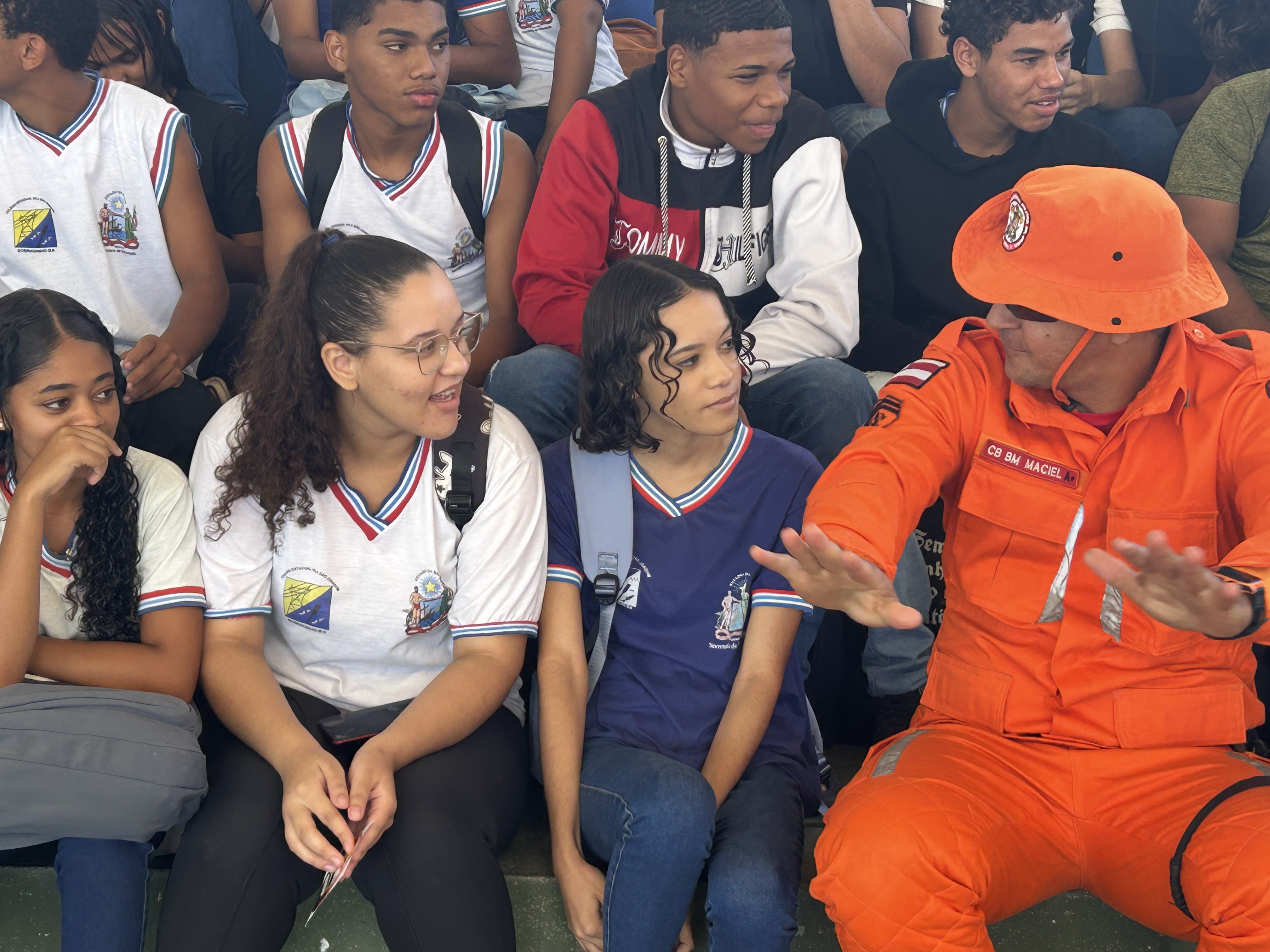 A ação marca o segundo dia da terceira etapa da Caravana e envolveu uma atuação articulada entre a Secretaria do Meio Ambiente (Sema), o Instituto do Meio Ambiente e Recursos Hídricos (Inema), a Secretaria da Saúde (Sesab), a Defesa Civil Estadual (Sudec), o Corpo de Bombeiros Militares da Bahia, a Companhia de Polícia de Proteção Ambiental (Coppa) e brigadas voluntárias. Cada órgão compartilhou com os estudantes aspectos práticos e preventivos relacionados à sua área de atuação, promovendo uma escuta ativa e participativa com os alunos.
