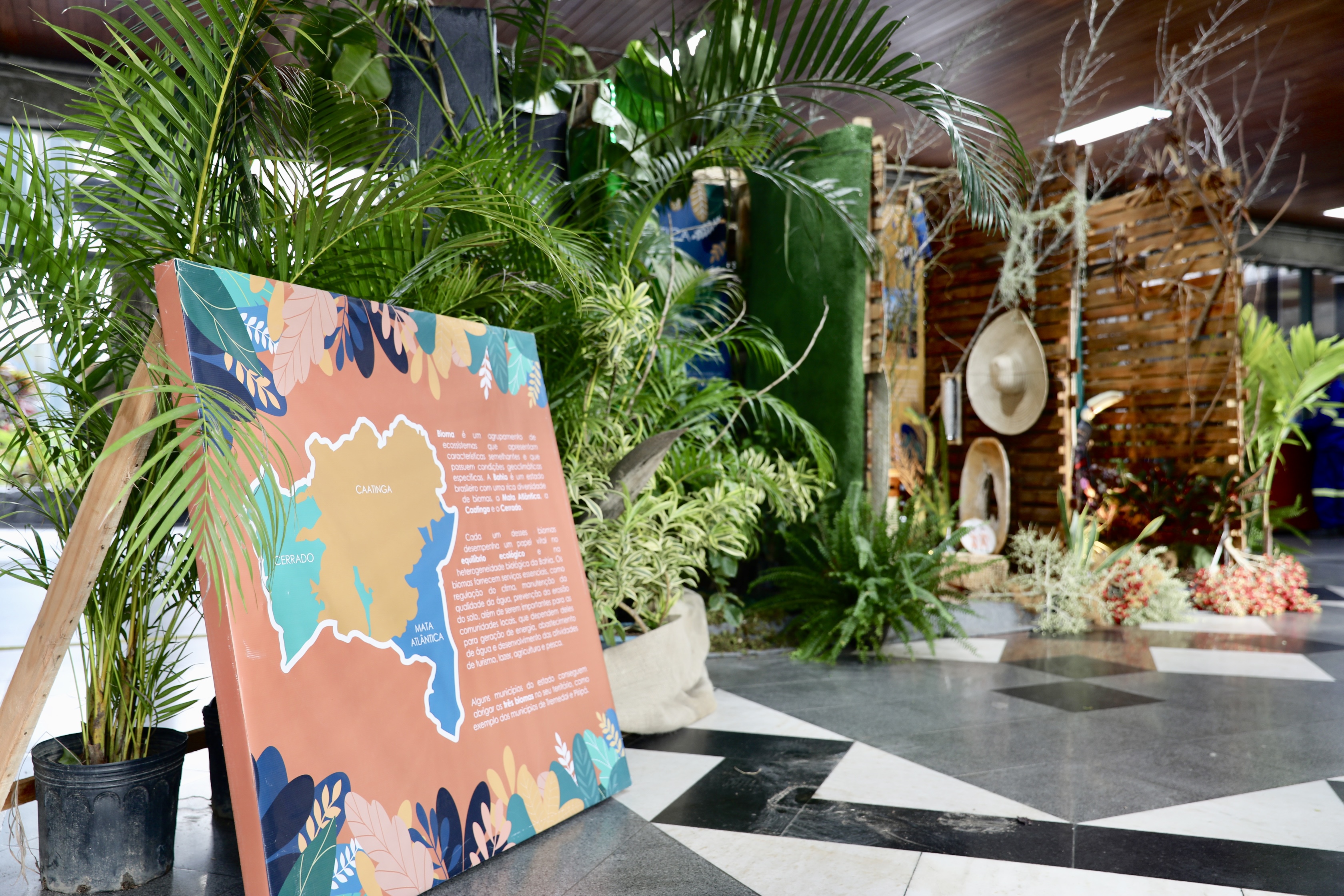Aberta ao público de segunda a sexta-feira, das 9h às 20h, a mostra apresenta os três biomas presentes no território baiano: Caatinga, Cerrado e Mata Atlântica. Por meio de painéis informativos, estruturas montadas com pallets e uma TV que exibe imagens das paisagens e da biodiversidade de cada ecossistema.