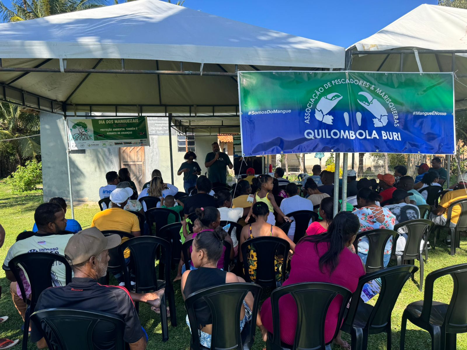 Neste domingo (27), foi lançado no Quilombo do Buri, em Conde, no Litoral Norte da Bahia, o projeto Raízes no Mangue, Futuro Sustentável, pela Associação de Pescadores e Marisqueiras do Quilombo, iniciativa voltada à restauração ecológica, enfrentamento ao lixo no mar e valorização do turismo de base comunitária. Com apoio da Secretaria do Meio Ambiente (Sema), o projeto fortalece a atuação conjunta pela proteção dos manguezais e acontece um dia após o Dia Mundial de Proteção aos Manguezais, celebrado no sábado (26), reforçando o compromisso da Bahia com a conservação desse ecossistema essencial à biodiversidade e à vida de milhares de famílias que vivem da pesca artesanal.