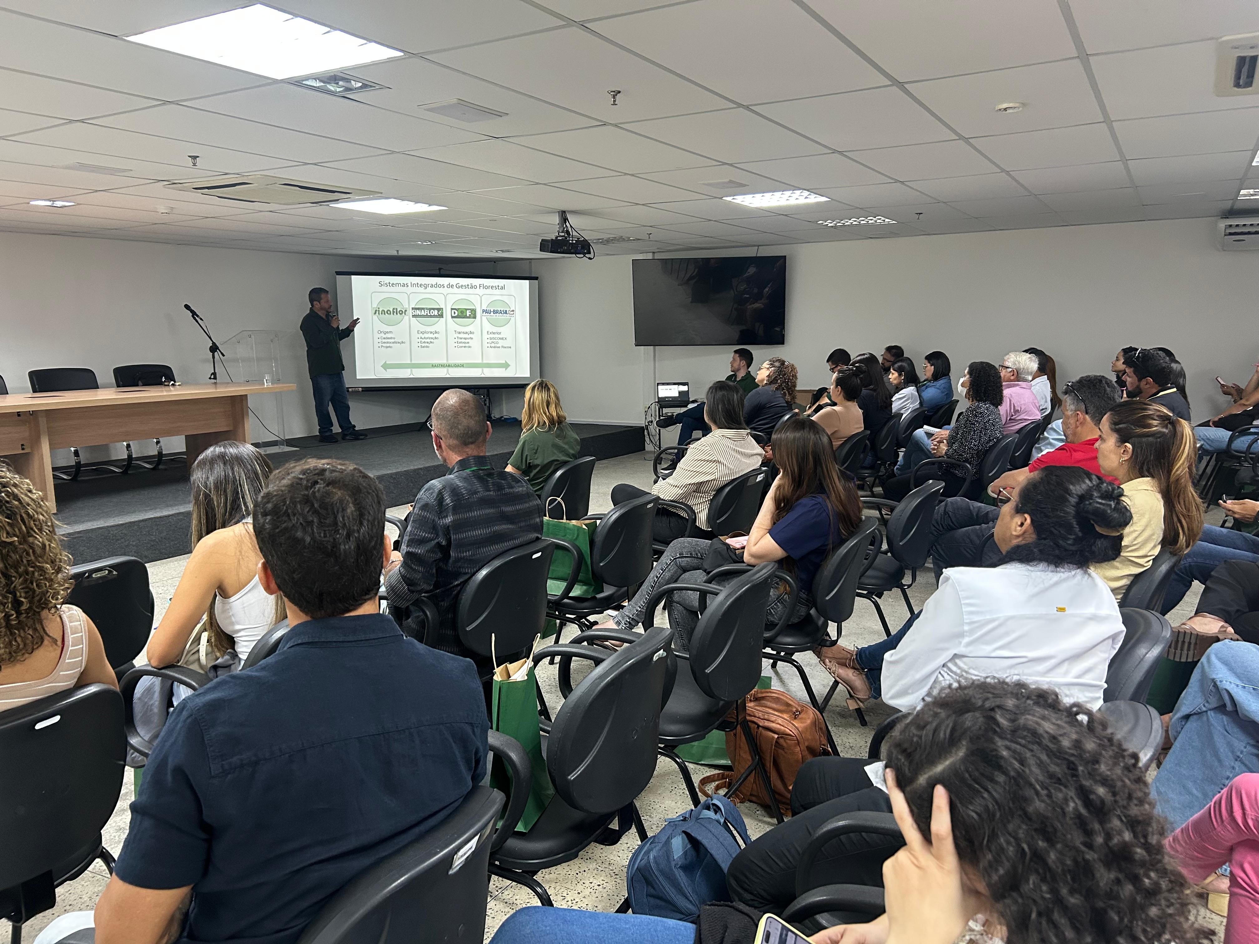 Começou nesta quarta-feira (29) o Curso para Operação do Sistema Nacional de Controle da Origem dos Produtos Florestais (Sinaflor) e do Sinaflor+, a capacitação é promovida pelo Instituto Brasileiro do Meio Ambiente e dos Recursos Naturais Renováveis (Ibama) e segue até o dia 31, no auditório da Secretaria do Desenvolvimento Urbano (Sedur).