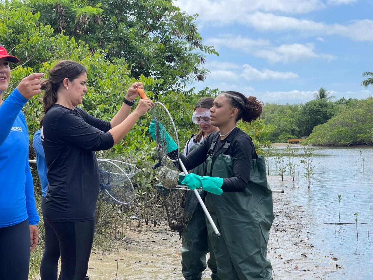 “Tivemos uma breve reunião com a secretária de governo, Larissa, aqui de Itaparica, que se colocou à disposição para continuar nos apoiando nessa importante ação de remoção dessas espécies invasoras que têm afetado a comunidade”, explicou Maiana Pitombo. “Já no Hotel Sesc Itaparica, discutimos potencialidades de elaboração de projetos em conjunto, especialmente de restauração de manguezal e combate à espécie exótica invasora”.