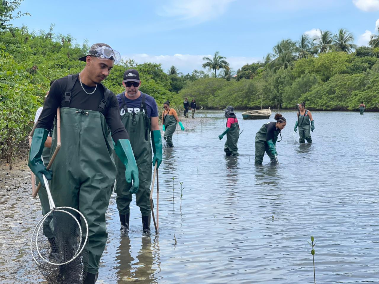 Enquanto na capital os debates se voltaram ao futuro do planeta, em Itaparica a cooperação Bahia–França se consolidou em ações concretas de conservação, manejo e fortalecimento de parcerias locais. Nesta quinta-feira (6), representantes da Federação dos Parques Naturais Regionais da França acompanharam equipes da Secretaria do Meio Ambiente (Sema) em mais uma etapa de retirada da medusa invasora Cassiopeia andromeda, na Área de Proteção Ambiental (APA) da Baía de Todos-os-Santos.