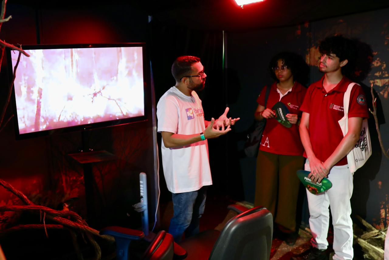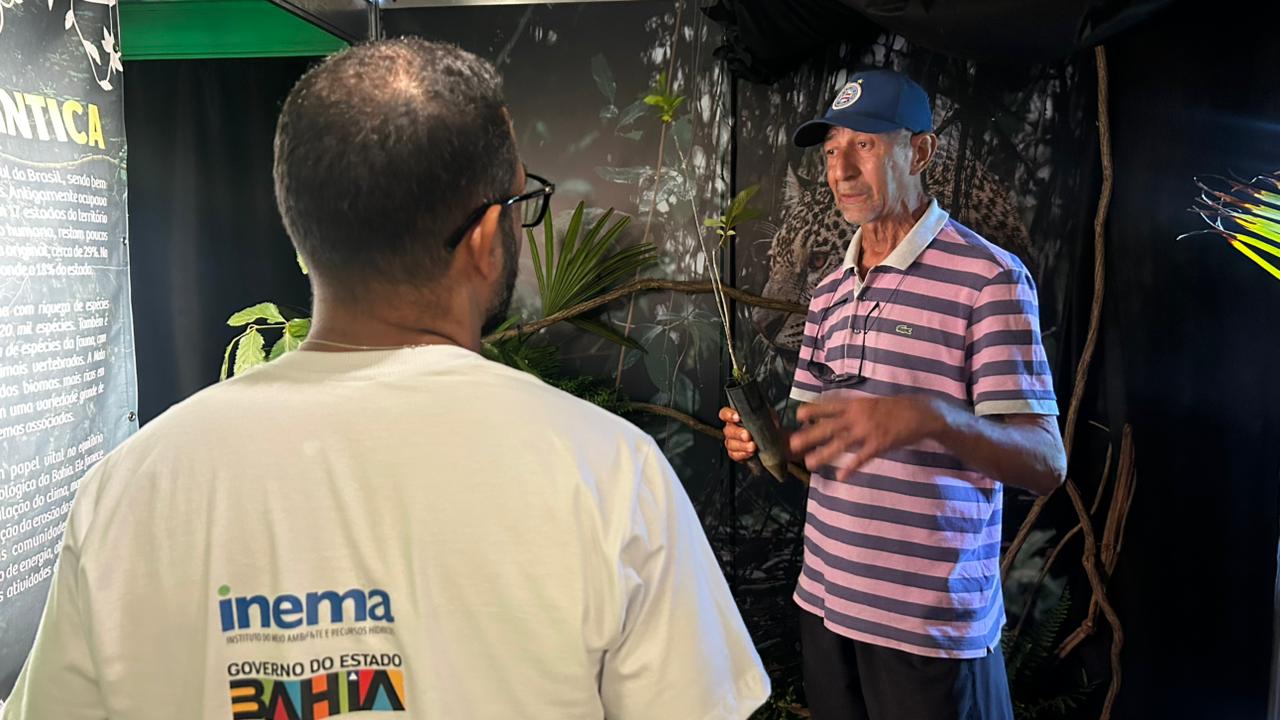 Além da entrega das mudas, o estande reúne painéis informativos sobre serviços ecossistêmicos, biodiversidade, recursos hídricos, polinizadores e produção sustentável, em uma ambientação que recria elementos da Mata Atlântica. Outro destaque é o espaço sensorial dedicado às queimadas, onde o Programa Bahia Sem Fogo é apresentado por meio de realidade virtual (VR), permitindo ao visitante compreender os impactos do fogo sobre os ecossistemas e as estratégias de prevenção e combate aos incêndios florestais.