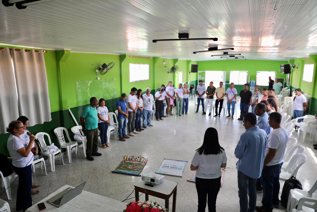 Cerca de 35 pessoas, entre representantes municipais, operadores de sistemas e lideranças comunitárias, participaram nesta quinta-feira (22), em Riachão do Jacuípe, da capacitação de agentes multiplicadores do Programa Água Doce Bahia (PAD-Bahia). A atividade reuniu representantes de comunidades dos municípios de Riachão do Jacuípe, Pé de Serra, Capela do Alto Alegre e Gavião, consolidando mais uma etapa do processo formativo que vem sendo realizado em diferentes regiões do estado.