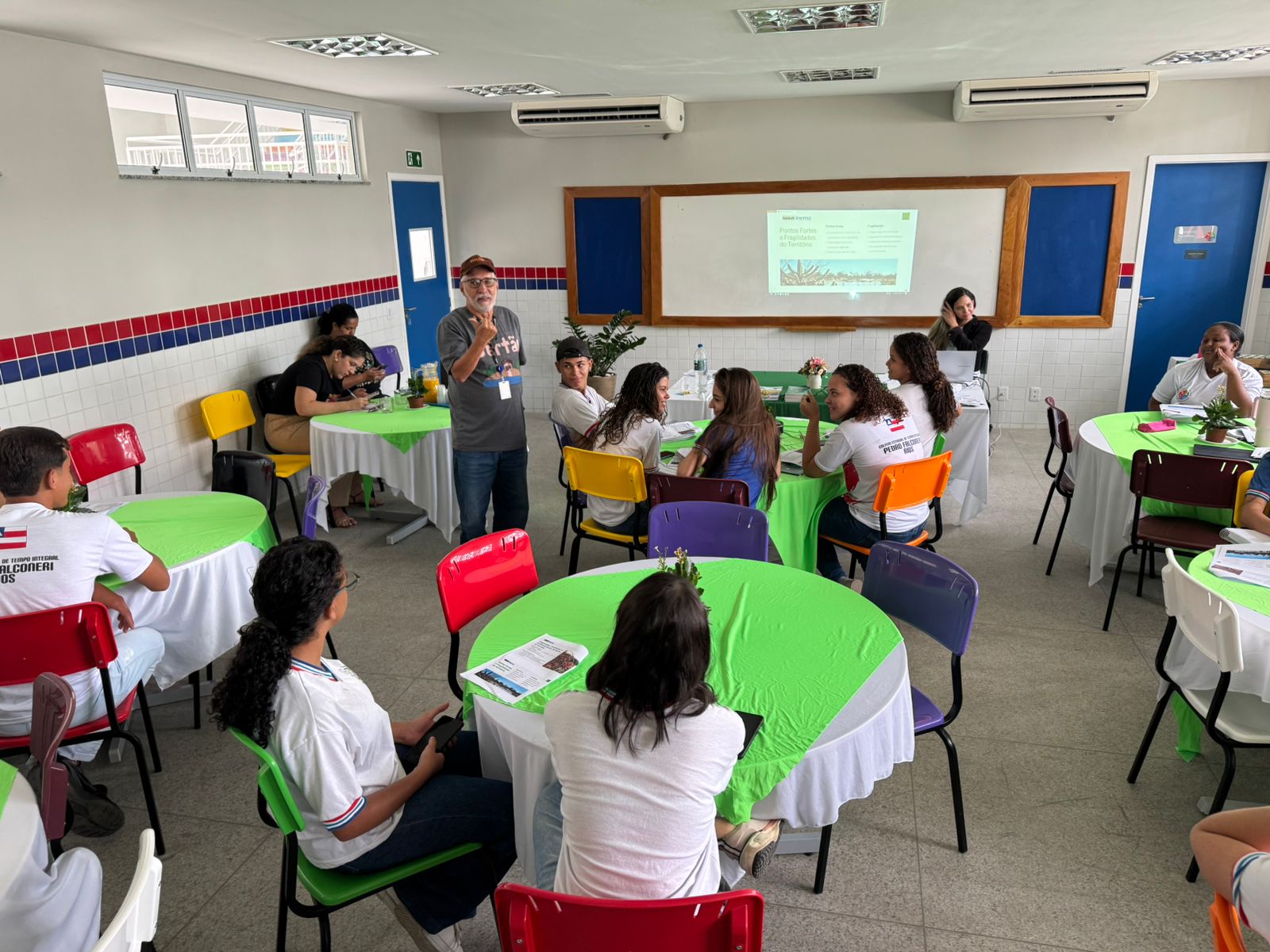 Durante a roda de conversa, foram abordados temas como segurança hídrica, convivência com o Semiárido, agricultura familiar, gestão ambiental e as diretrizes do Plano Territorial de Desenvolvimento Sustentável (PTDS), sempre relacionando os conteúdos à realidade do município e do território.