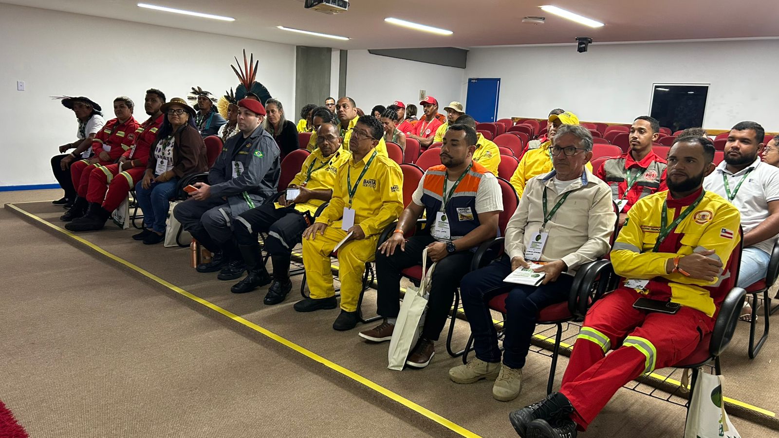 O brigadista Glaucio George Lima, da Brigada Força e Resgate, do Grupamento de Proteção Ambiental do município de Sento Sé, atuou como porta-voz das brigadas presentes e destacou a importância de ampliar o suporte às equipes voluntárias que atuam na linha de frente do combate aos incêndios. “Nosso trabalho é feito muitas vezes de forma voluntária, com muito compromisso com o território. Por isso, é fundamental que as brigadas tenham apoio, equipamentos adequados e também oportunidades de formação e organização.”