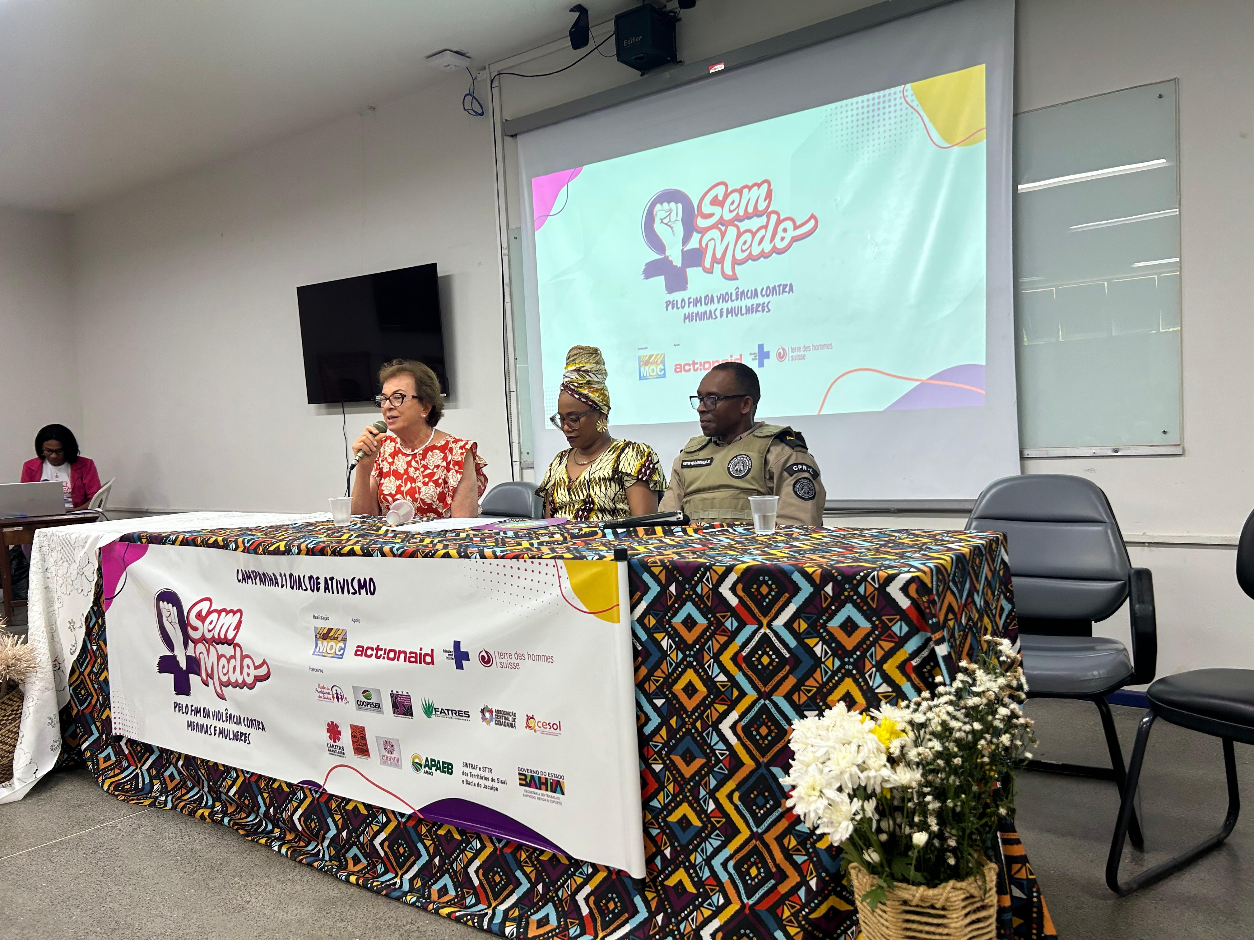 Com o objetivo de promover uma reflexão coletiva e engajamento social sobre o enfrentamento às múltiplas formas de violência de gênero, foi lançada a campanha Sem Medo - Pelo Fim Violência Contra Meninas e Mulheres, nesta quarta-feira (19), na Universidade Estadual de Feira de Santana (Uefs). A atividade, que integra a programação dos 21 Dias de Ativismo pelo Fim da Violência contra a Mulher, foi promovida pelo Movimento de Organização Comunitária (MOC).