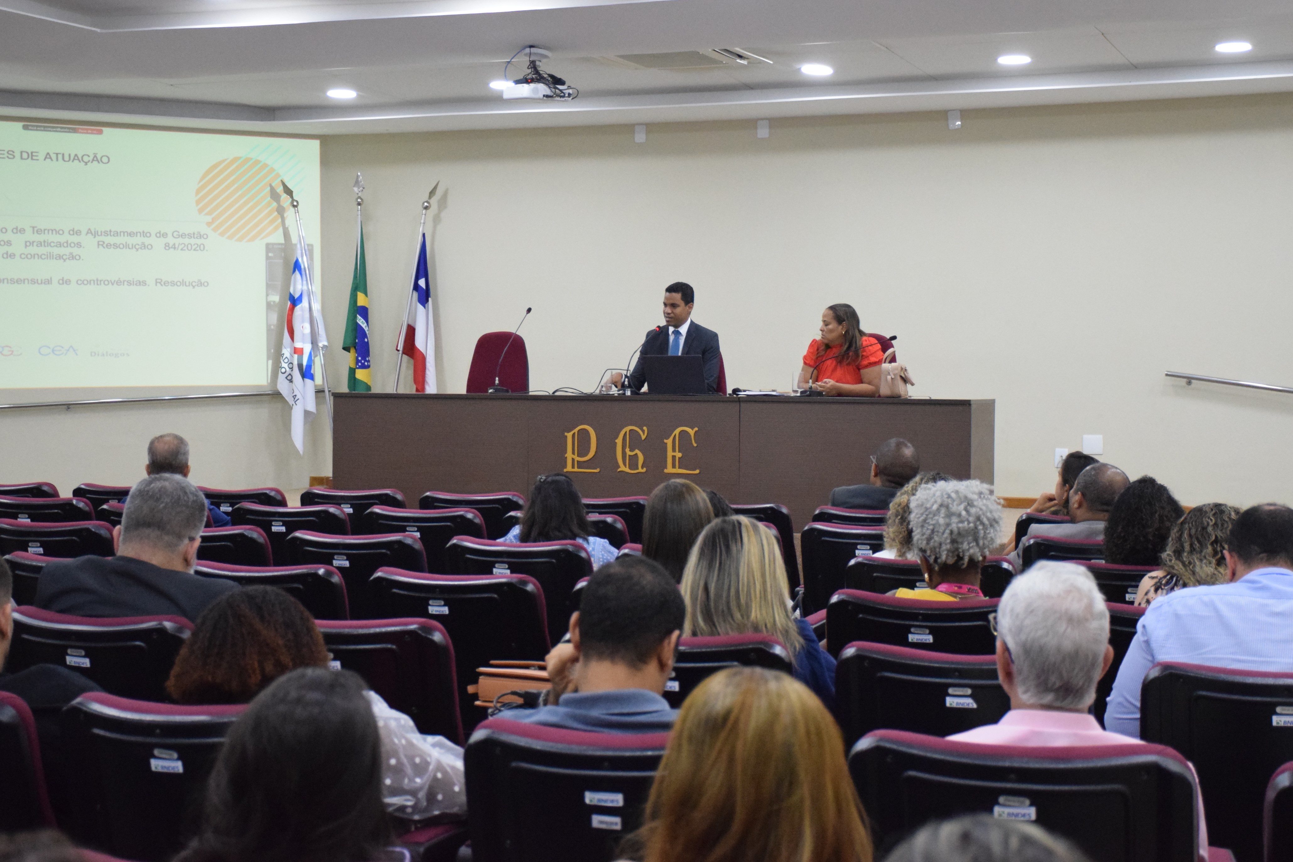 A 14ª edição da Rede de Diálogos com a Procuradoria Geral do Estado da Bahia (PGE-BA) teve como tema a atuação da PGE na prestação de contas do Estado, com foco no Núcleo de Controle e Acompanhamento de Contas do Estado (NTCE). O evento aconteceu ontem pela manhã (14), no Auditório Paulo Spínola, e contou com a participação de servidores da administração pública direta e indireta do Estado. Durante o encontro, a procuradora Maristela Barbosa e o procurador Ubenilson Colombiano, ambos membros do NTCE, conduziram as palestras, destacando as atividades desenvolvidas pelo núcleo e sua importância na garantia da regularidade das contas públicas do Estado.