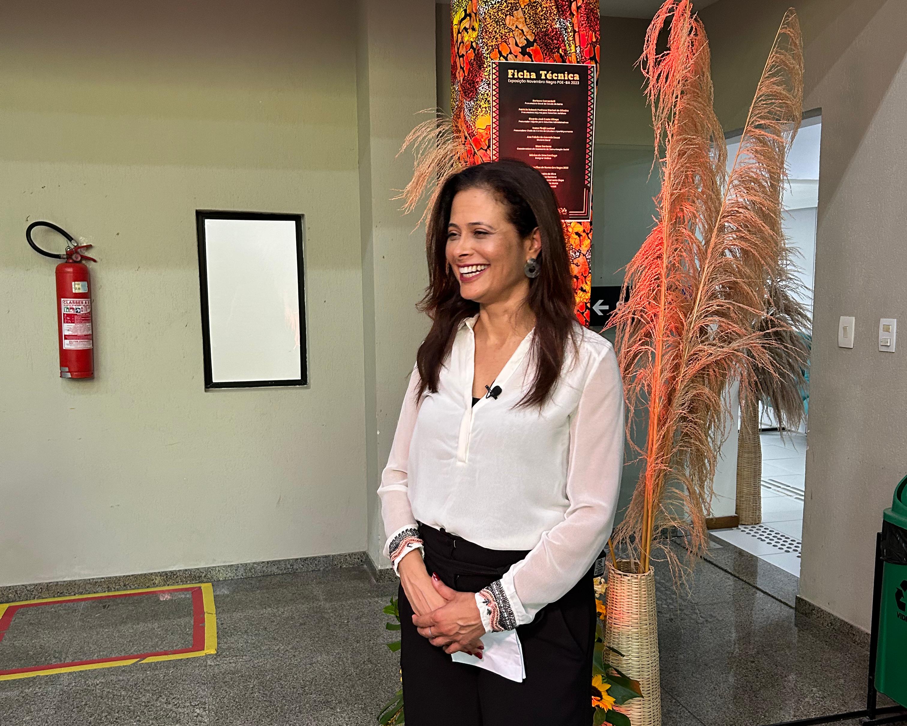 A Procuradora Geral do Estado, Bárbara Camardelli, realizou a abertura do evento e reafirmou a importância do Estado no combate ao racismo estrutural e nas atuações com políticas públicas para diminuir a desigualdade racial dentro da instituição. “É justamente fazer com que essa diferença seja minimizada e consigamos um melhor acesso aqui dentro. Vamos fazer que essa Procuradoria seja realmente colorida, com todas as proporções que refletem na nossa sociedade baiana. É exatamente discutir de que maneira conseguimos que esses lugares sejam ocupados por aqueles que formam a sociedade em geral”.