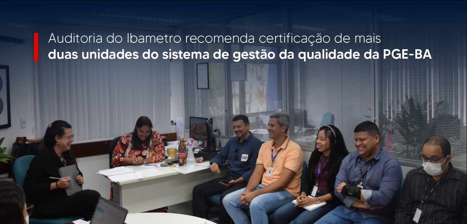 Nos dias 01 e 02 de março 2023, o Instituto Baiano de Metrologia da Bahia – Ibametro, realizou auditoria externa no Sistema de Gestão da Qualidade da PGE (SGQ-DG/PGE), com objetivo de verificar a conformidade dos processos de trabalho em relação aos requisitos da Norma ABNT NBR ISO 9001:2015, a qual estabelece um modelo de gestão da qualidade para as organizações.
